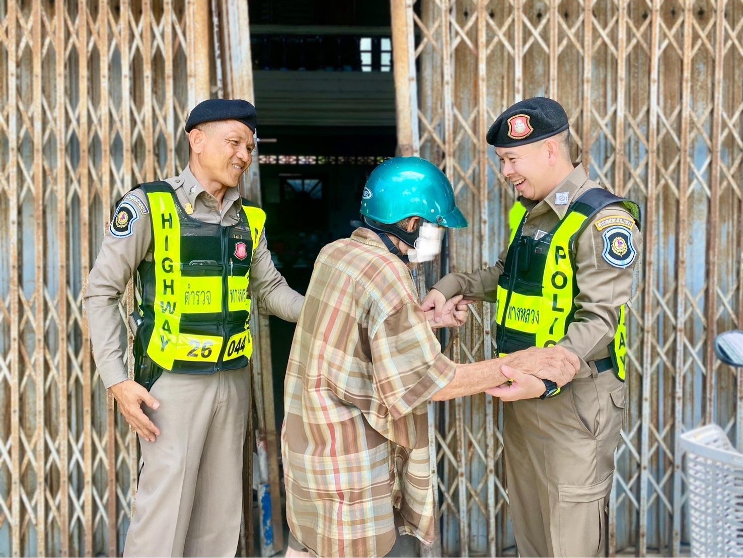 เมื่อเวลา 13.00 น.วันที่ 20 พ.ค.ขณะที่ตำรวจทางหลวง ส.ทล.6 กก.2 บก.ทล.(กาญจน์-สุพรรณฯ) ประกอบด้วย ร.ต.ท.โกศล ศรีพรหม (ผบ.รถ) ร.ต.ต.นิกร สีเมือง (พงว.)ส.ต.อ.ภาคิณ คูณสิทธิกุล (พลขับ) ส.ต.อ.ปฏิพล ประสพกาญจน์ (พงว.) กำลังออกปฏิบัติหน้าที่พื้นที่รับผิดชอบบริเวณ ทางหลวง 323 กม.44+800 ต.ท่าม่วง อ.ท่าม่วง จ.กาญจนบุรี พบชายชราสูงอายุถือไม้เท้าค้ำยันกำลังจะเดินข้ามถนน เจ้าหน้าที่เห็นจึงรีบหยุดรถลงไปสอบถามด้วยความเป็นห่วง เบื้องต้นทราบว่าสายตาไม่ดี รวมถึงสภาพอากาศที่ร้อนมาก อีกทั้งจุดดังกล่าวเป็นถนน 4 แยกมีรถสัญจรค่อนข้างมาก อาจจะทำให้เกิดอุบัติเหตุได้ เจ้าหน้าที่ตำรวจทางหลวงจึงช่วยประคองข้ามถนนไปยังบ้านพัก ทราบว่าลุงพักอาศัยอยู่ที่บ้านเพียงคนเดียว มักจะข้ามถนนเป็นประจำ ทั้งนี้ได้กำชับเพื่อนบ้านให้ช่วยดูแลจะได้ไม่เกิดอุบัติเหตุภายหลัง อย่างไรก็ตามภาพการยื่นมือเข้าช่วยเหลือประชาชนในครั้งนี้ได้รับคำขอบคุณจากคุณลุง และได้รับคำชื่นชมจากประชาชนที่ผ่านไปผ่านมาในละแวกดังกล่าวอย่างมาก.