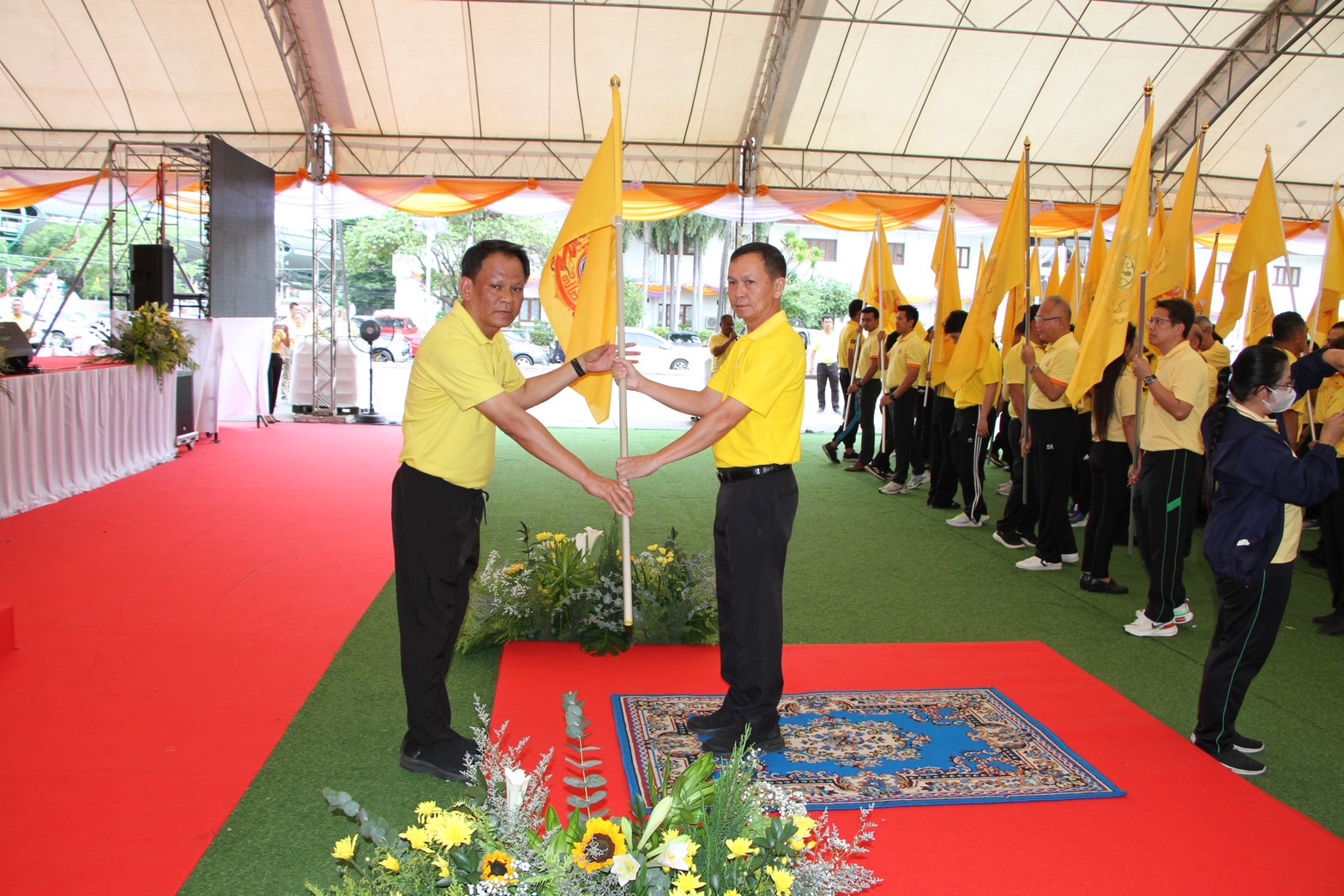 เมื่อเวลา 16.00 น.วันที่ 11 มิ.ย.ที่ผ่านมา ที่โดมชั่วคราวลานหน้าศาลากลางจังหวัดสมุทรปราการ นายศุภมิตร ชิณศรี ผวจ.สมุทรปราการ เป็นประธานรับมอบธงตราสัญลักษณ์งานเฉลิมพระเกียรติฯในกิจกรรม เดิน ปั่น ธงตราสัญลักษณ์งานเฉลิมพระเกียรติพระบาทสมเด็จพระเจ้าอยู่หัว เนื่องในโอกาสพระราชพิธีมหามงคลเฉลิมพระชนมพรรษา 6 รอบ 28 กรกฎาคม 2567 จากนายวัฒนา เจริญจิตร นายอำเภอเมืองสมุทรปราการ
