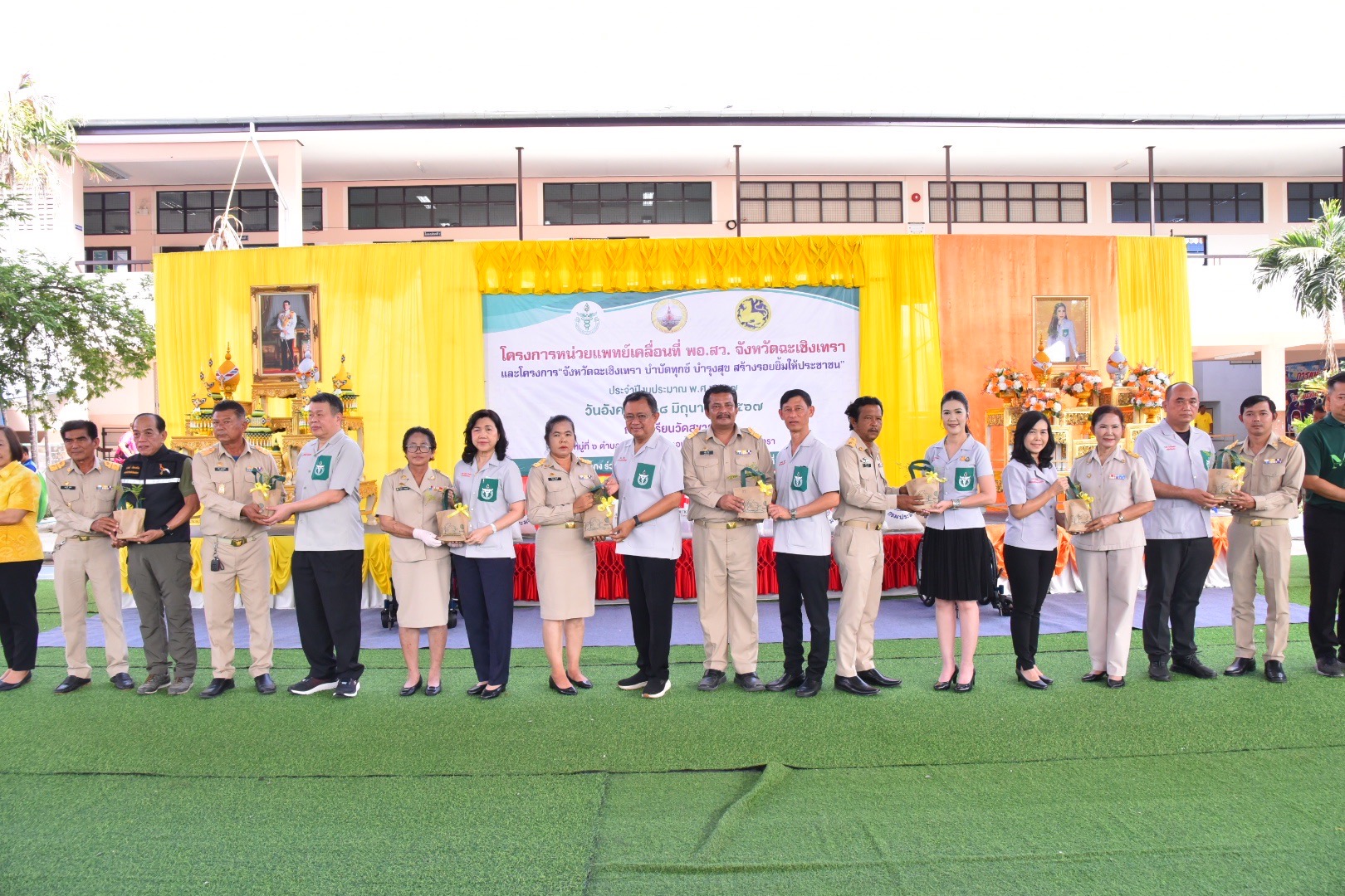 นอกจากนี้ผู้ว่าราชการจังหวัดฉะเชิงเทรา เป็นผู้แทนมอบข้าวสารจากสำนักงานเหล่ากาชาดจังหวัดฉะเชิงเทรา ให้แก่ประชาชนที่มารอรับบริการจำนวน 50 ถุง โดยจังหวัดฉะเชิงเทราเริ่มดำเนินงานหน่วยแพทย์เคลื่อนที่ พอ.สว. เมื่อปี พ.ศ.2515 รวมระยะเวลา 51 ปี เป็นจังหวัด พอ.สว. ลำดับที่ 35 จากจำนวน 63 จังหวัด สำหรับกิจกรรมหน่วยแพทย์เคลื่อนที่ พอ.สว. ที่จัดขึ้นครั้งนี้เพื่อเป็นการเทิดพระเกียรติฯ สมเด็จพระเจ้าพี่นางเธอ เจ้าฟ้ากัลยาณิวัฒนา กรมหลวงนราธิวาสราชนครินทร์ และถวายเป็นพระราชกุศล และน้อมรำลึกในพระมหากรุณาธิคุณแด่พระองค์ท่าน ที่ทรงเป็นพระมิ่งขวัญและทรงเป็นปูชนียบุคคล ที่เคารพสักการะยิ่งของพสกนิกรชาวไทยได้ทรงประกอบพระกรณียกิจ เพื่อความผาสุกของพสกนิกรชาวไทยทุกหมู่เหล่าตลอดพระชนม์ชีพของพระองค์ท่าน ทรงมีพระราชปณิธาน ประกอบด้วยคุณธรรมแห่งพระพุทธศาสนาทรงยึดมั่นในคุณค่าความเป็นมนุษย์ ไม่คำนึงถึงชาติกำเนิดและสถานะ พระราชหฤทัยแน่วแน่ในการช่วยเหลือประชาชนให้พ้นทุกข์ และมีความเป็นอยู่ที่ดีขึ้น ก่อบังเกิดคุณประโยชน์ยิ่งใหญ่ไพศาลแก่ประเทศชาติ ในด้านการศึกษา การแพทย์ พยาบาล สาธารณสุข สังคมสงเคราะห์ การพัฒนาสิ่งแวดล้อม การยกระดับคุณภาพชีวิต โดยเฉพาะอย่างยิ่งในชนบทที่ห่างไกลความเจริญ สืบสานพระปณิธานสมเด็จพระศรีนครินทราบรมราชชนนี พสกนิกรชาวจังหวัดฉะเชิงเทรา ล้วนสำนึกในพระกรุณาธิคุณ.
