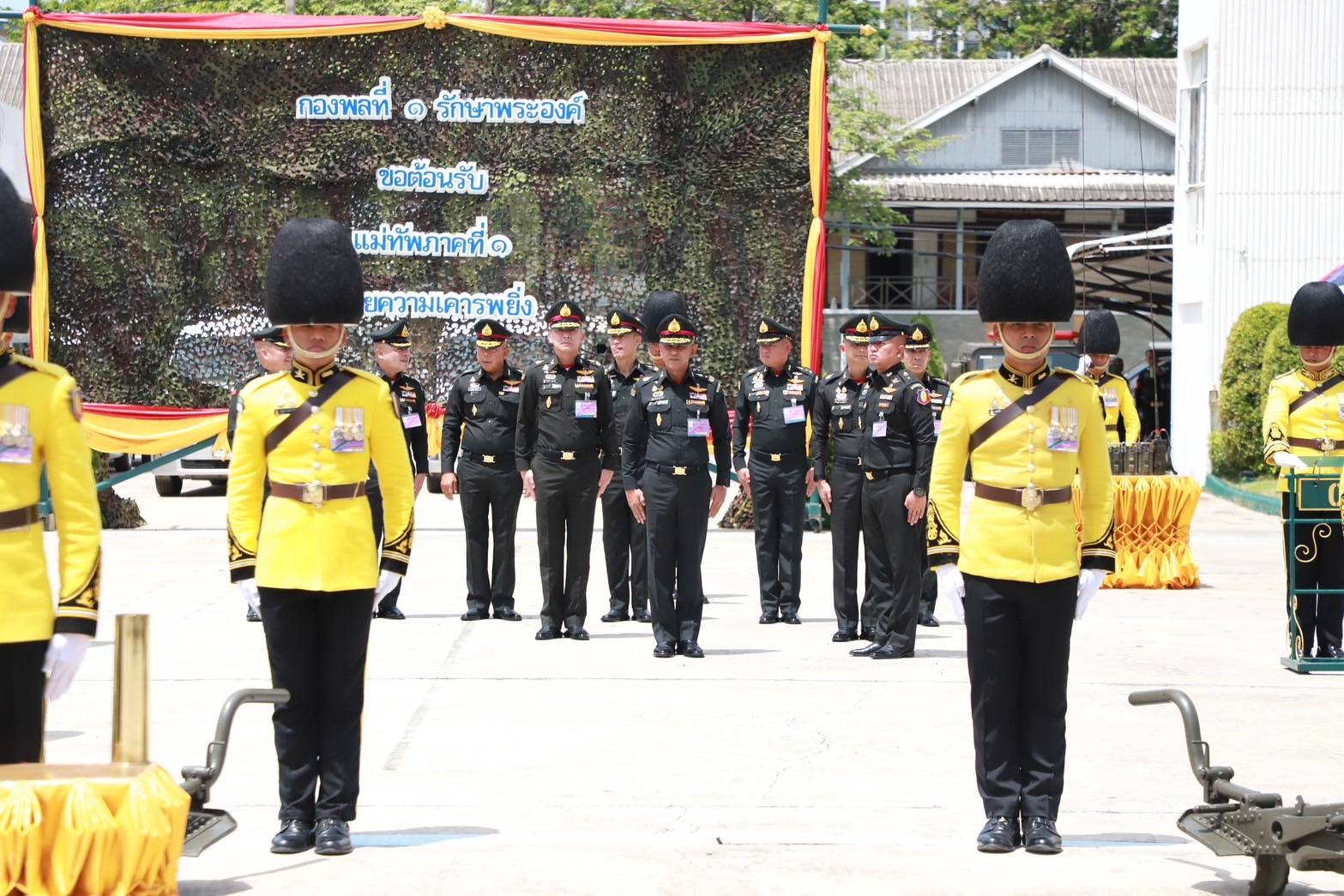 ในโอกาสนี้ แม่ทัพภาคที่ 1 ได้มอบนโยบาย และข้อสั่งการที่สำคัญ มีใจความสำคัญดังนี้ “กองพลที่ 1 รักษาพระองค์ เป็นหน่วยที่มีเกียรติประวัติยาวนาน ทั้งในเรื่องการสงคราม, ราชการสนาม และการดูแลความเรียบร้อยในพื้นที่รับผิดชอบ ขอให้ทุกหน่วยได้สร้างความรัก ความสามัคคีของกำลังพลภายในหน่วยตั้งแต่ในสถานการณ์ปกติ เพราะเมื่อต้องปฏิบัติภารกิจในสถานการณ์วิกฤต หรือสถานการณ์คับขันจะต้องใช้ความเป็นทหารอาชีพในการฝ่าฟันร่วมเป็นร่วมตายเพื่อทำให้ภารกิจสำเร็จ การเป็นทหารอาชีพจะต้องมีการพัฒนาขีดความสามารถเป็นบุคคล และขีดความสามารถเป็นหน่วย เช่น การฝึกการต่อสู้ป้องกันตัวและมวยไทย, การฝึกการจับล็อค การจับกุม และการใช้ปืนอัดลมเบา (ปืน BB Gun) เป็นเครื่องช่วยฝึก ขอให้ดูแลกำลังพล โดยเฉพาะทหารกองประจำการ เปรียบเสมือนเป็น “ลูกน้อง” ที่หมายความว่า เป็นทั้งลูก และเป็นทั้งน้อง เพื่อให้เป็นกำลังสำคัญในการปฏิบัติภารกิจของหน่วย ตลอดจนเป็นกำลังสำคัญในการรักษาความมั่นคงของประเทศชาติ ทั้งชาติ ศาสนา และพระมหากษัตริย์ ขอให้ผู้บังคับหน่วยทุกระดับลงไปกำกับดูแลงานของหน่วยอย่างใกล้ชิด เนื่องจากความสำเร็จหรือความล้มเหลวของหน่วยนั้น ย่อมขึ้นอยู่ตัวของผู้บังคับหน่วยทั้งสิ้น และในฐานะที่กองพลที่ 1 รักษาพระองค์ เป็นหน่วยหลักในการดำเนินการในพิธีสวนสนามและถวายสัตย์ปฏิญาณ ของทหารรักษาพระองค์ โดยจะต้องเป็นแบบอย่างของทหารรักษาพระองค์ของกองทัพบก”