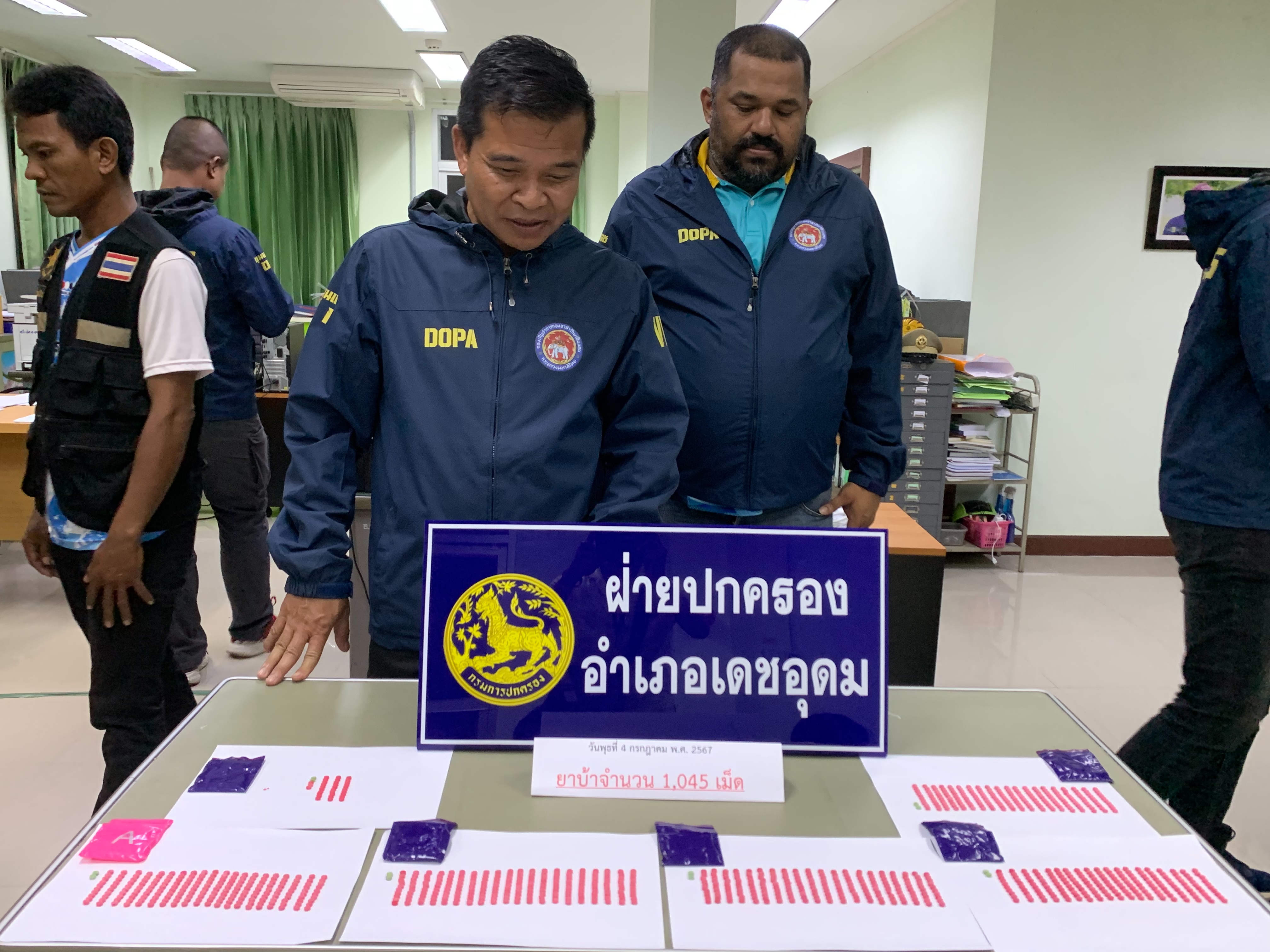 เดินหน้าต่อเนื่องไม่หยุดยั้ง..."ยุทธการปิดสวิตช์ผู้ค้ายาเสพติดเมืองดอกบัว"ชุดปฏิบัติการพิเศษฝ่ายปกครองอำเภอเดชอุดมรวบเอเย่นต์ยานรก พร้อมของกลาง 1,045 เม็ด พร้อมลูกค้านักเสพอีก 2 ราย