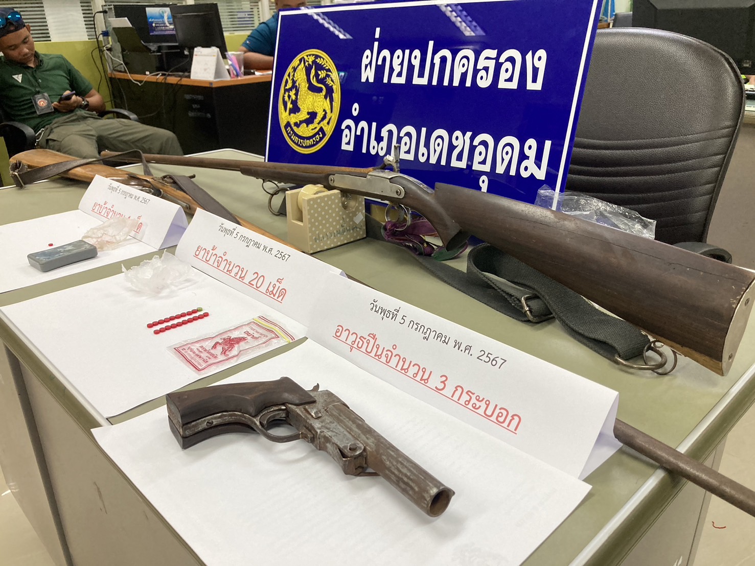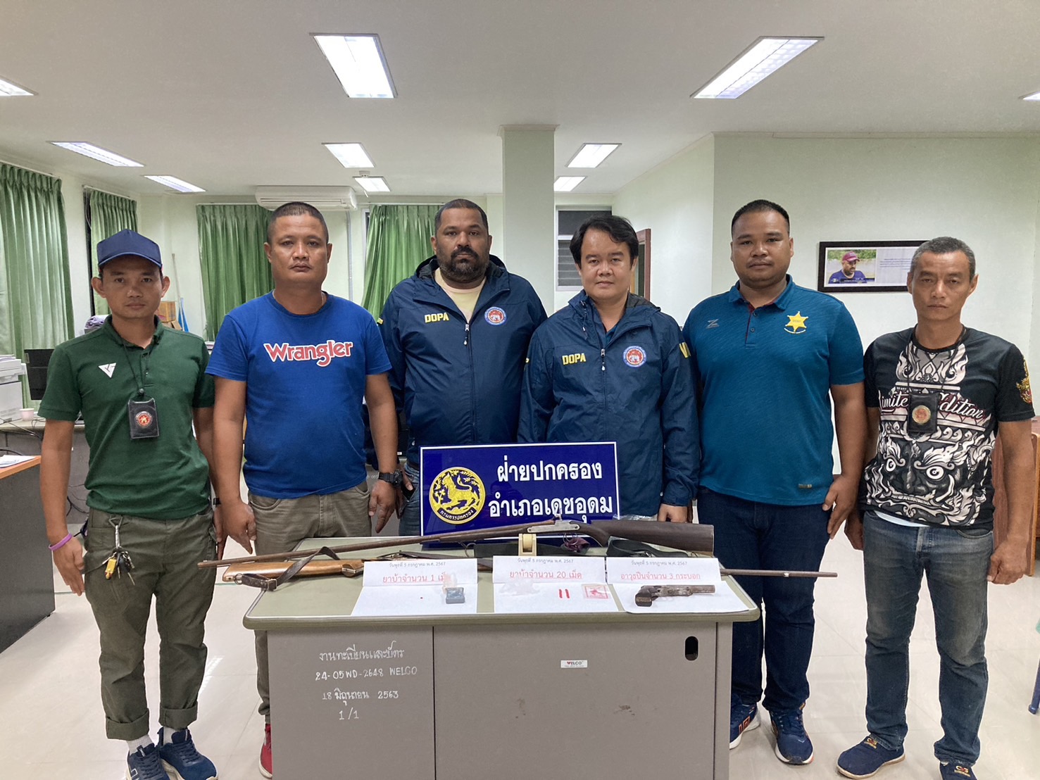 ชุดปฏิบัติการพิเศษฝ่ายปกครองอำเภออุดม รีบลงพื้นที่ตรวจสอบ พบนางเปรี้ยว (นามสมมุติ) อายุ 59 ปี พร้อมของกลางยาบ้า 20 เม็ดซุกอยู่ในบ้าน เบื้องต้นทราบว่านางเปรี้ยวเคยถูกจับคดียาเสพติดเมื่อ 9 เดือนที่ผ่านมา หลังพ้นโทษกลับมามีพฤติกรรมจำหน่ายยาเสพติดอีก สอบถามเจ้าตัวอ้างว่า เพิ่งพ้นคดีมาจริง อายุมากแล้วต้องเลี้ยงหลานพิการ อาชีพอื่นได้เงินช้าจำเป็นต้อขายยาบ้าได้เงินเร็วกว่า ทั้งนี้จากการตรวจค้นพื้นที่ ต.บัวงาม เจ้าหน้าที่ยังตรวจยึดวัตถุลักษณะคล้ายปืน 3 กระบอก และค้นหาผู้เสพได้อีก 5 ราย ทั้งหมดสมัครใจบำบัด แจ้งข้อนางเปรี้ยวจัดทำบันทึกจับกุม นำตัวพร้อมของกลางส่งพนักงานสอบสวน สภ.เดชอุดม ดำเนินคดีต่อไป.