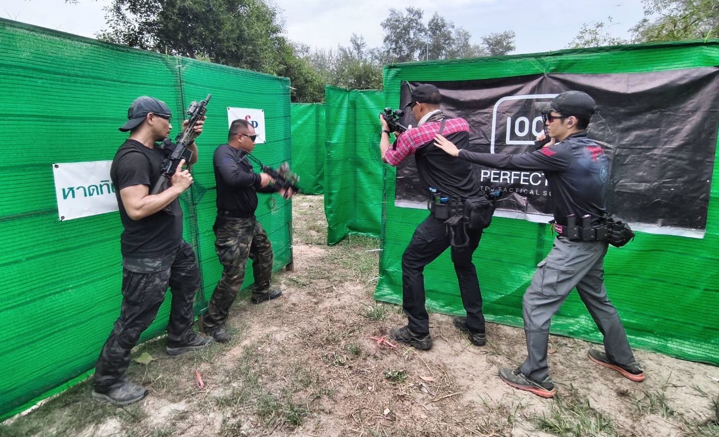 เมื่อวันที่ 20-21 ก.ค.ที่ผ่านมา จ.ส.อ.ธัญญ์พัทธิ์ ธรรมศิลป์ หรือ"ครูโอ๊ต TDA" เดินทางไปสอนการยิงปืนหลักสูตร TDA LV.5 ที่สนามยิงปืนราชนาวีสงขลา จ.สงขลา โดยมีทหาร และพลเรือนเข้าร่วมเรียนหลายคน สำหรับหลักสูตร Lv.5 เป็นหลักสูตรการยิงปืนขั้นสูง มีการจำลองสถานการ์ณหลายแบบ เช่นการเคลื่อนที่ยิงก่อนเข้าไปหลบหลังที่กำบัง แล้วจะมีการสมมุติว่ามีภัยคุกคามเกิดขึ้นต่อเนื่อง โดยจะกำหนดให้ผู้เข้าเรียน ยิงคนร้ายสมมุติโดยมีการกำหนดให้ยิงตามจำนวนที่ครูฝึกให้โจทย์ บางเหตุการณ์ก็จะสมมุติเหตุการณ์คนร้ายเข้าบ้าน แล้วให้ผู้เข้าเรียนเข้าไปช่วยคนที่อยู่ในบ้านออกให้มาอย่างปลอดภัย