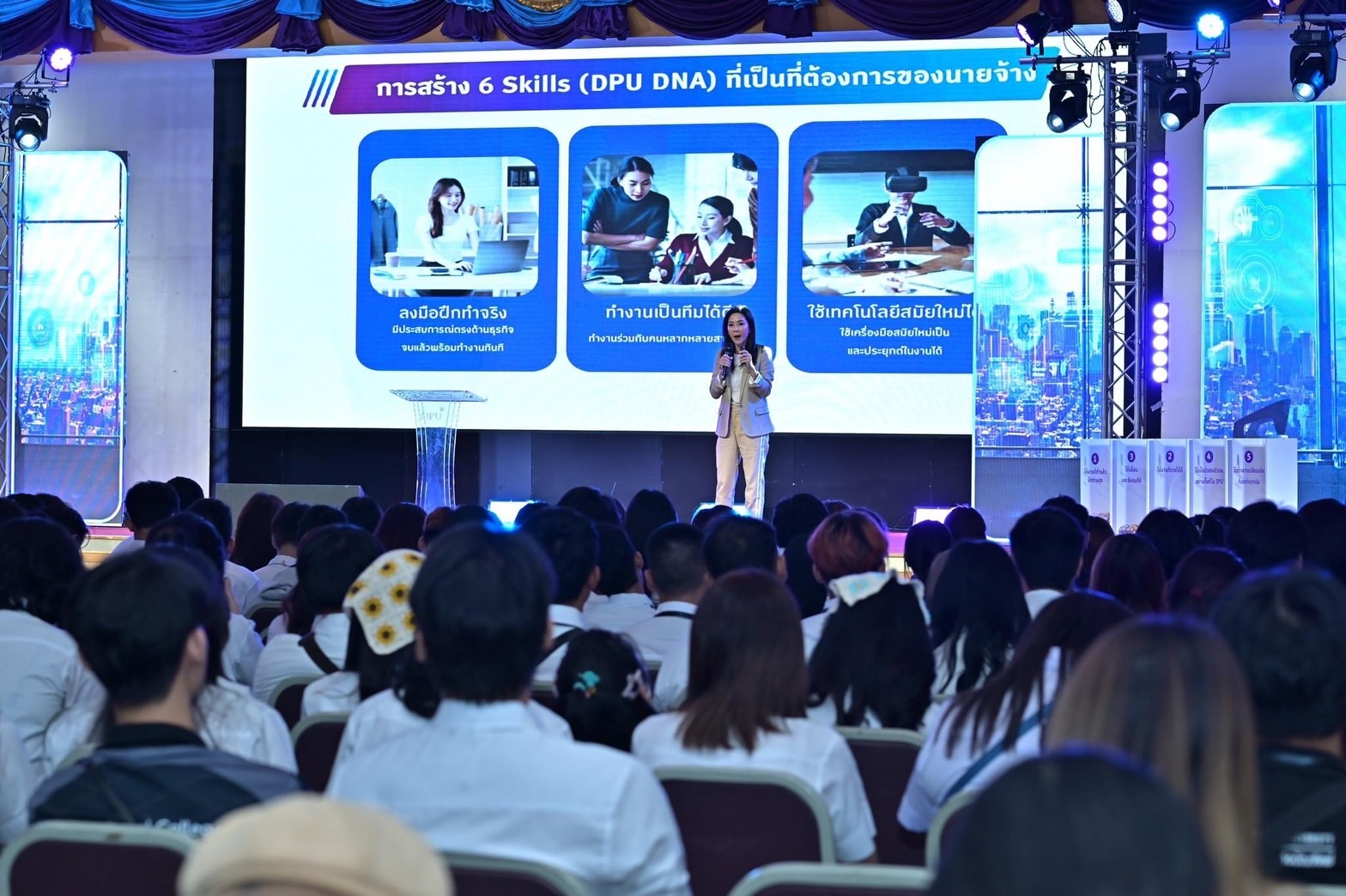 ยกตัวอย่างเช่นในทุกหลักสูตรปริญญาตรี จะมีองค์ประกอบวิชาสำคัญที่ฝังอยู่ เราเรียกว่า DPU CORE ที่เน้นเรื่องวิทยาศาสตร์และเทคโนโลยีเพื่อความยั่งยืน (Science and Technology for Sustainable Living ) นวัตกรรมด้านความยั่งยืน (Innovations for Sustainability) และ การวิเคราะห์ข้อมูลสำหรับผู้ประกอบการด้านความยั่งยืน (Data Analytics for Sustainable Entrepreneurs) เพื่อผลักดันให้นักศึกษานำความรู้มาประยุกต์ใช้ และสร้างมูลค่าเพิ่มให้กับชิ้นงานต่าง ๆ ที่นักศึกษาทำในระหว่างการเรียน และยังเป็นหลักประกันว่าเมื่อจบออกไปนั้นจะสามารถตอบสนองความต้องการในยุคศตวรรษที่ 21 ได้เป็นอย่างดี โดยจะเน้นพัฒนาทักษะเพื่อสร้าง 6 DNAs อันได้แก่ การคิดสร้างสรรค์ พัฒนาอย่างนักนวัตกรรม (Creativity and Innovation) การค้นหา และแก้ไขปัญหาเชิงสร้างสรรค์ (Analytical Thinking) ความชาญฉลาดในการใช้เทคโนโลยีเพื่อค้นคว้าพัฒนา และแก้ปัญหา (Technology Fluency) การสื่อสาร และเจรจาอย่างมีเทคนิค (Communication and Negotiation) การประสานงานเป็นทีมได้เยี่ยมยอด (Teamwork and Collaboration) การรู้รอบ และวิเคราะห์แบบผู้ประกอบการ (Entrepreneurship)