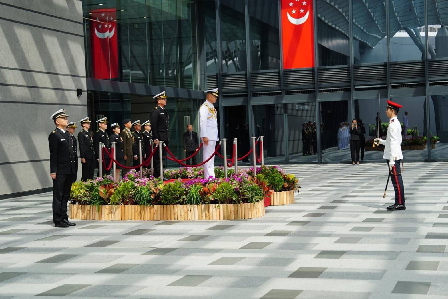 พลเรือเอก อะดุง พันธุ์เอี่ยม ผู้บัญชาการทหารเรือ เดินทางเยือนสาธารณรัฐสิงคโปร์อย่างเป็นทางการระหว่างวันที่ 13-15 ส.ค.โดยเมื่อวันที่ 14 ส.ค.ที่ผ่านมา ผู้บัญชาการทหารเรือ ได้เข้าเยี่ยมคำนับพลเรือตรี Sean Wat ผู้บัญชาการทหารเรือสิงคโปร์ และพลเรือโท Aaron Beng ผู้บัญชาการทหารสูงสุดสิงคโปร์ ที่อาคารกระทรวงกลาโหมสิงคโปร์ ก่อนเข้าเยี่ยมคำนับ ดอกเตอร์ อึ้ง เอ็ง เฮ็น รัฐมนตรีว่าการกระทรวงกลาโหมสิงคโปร์ โอกาสนี้รัฐมนตรีว่าการกระทรวงกลาโหมสิงคโปร์ได้มอบเครื่องอิสริยาภรณ์สิงคโปร์ เชิดชูเกียรติทางทหาร The Maritorious Service Middle (MSL) ที่ทางประธานาธิบดี Tharman Shanmugaratnam ของสิงคโปร์ได้มอบให้แก่ผู้บัญชาการทหารเรือ