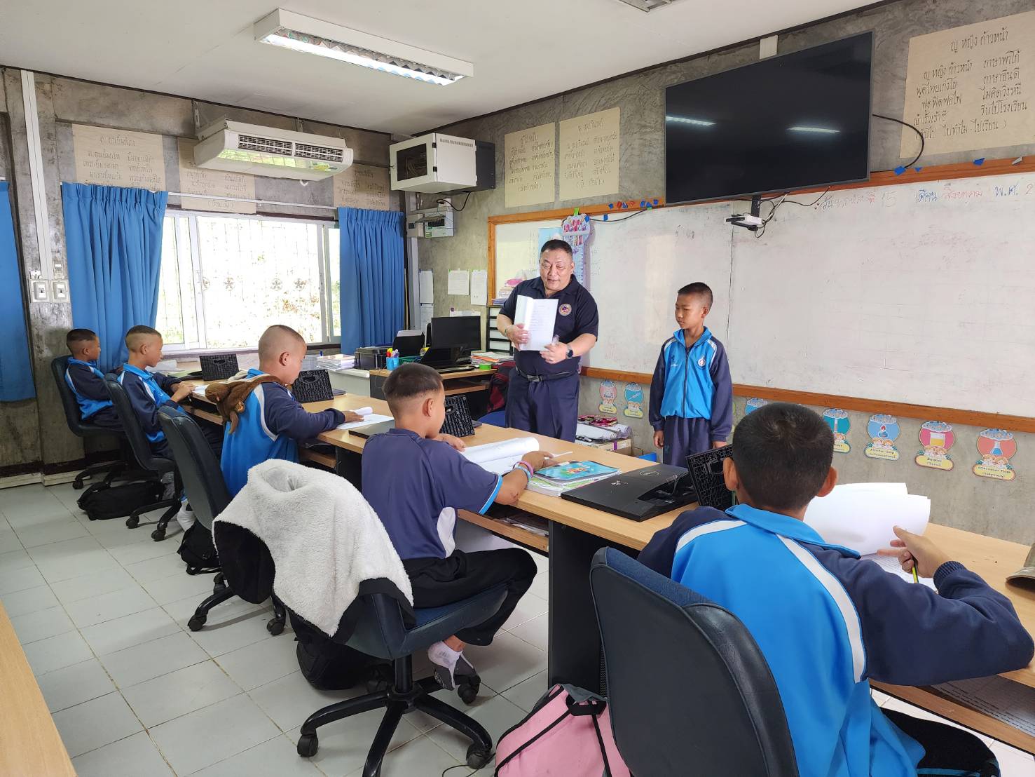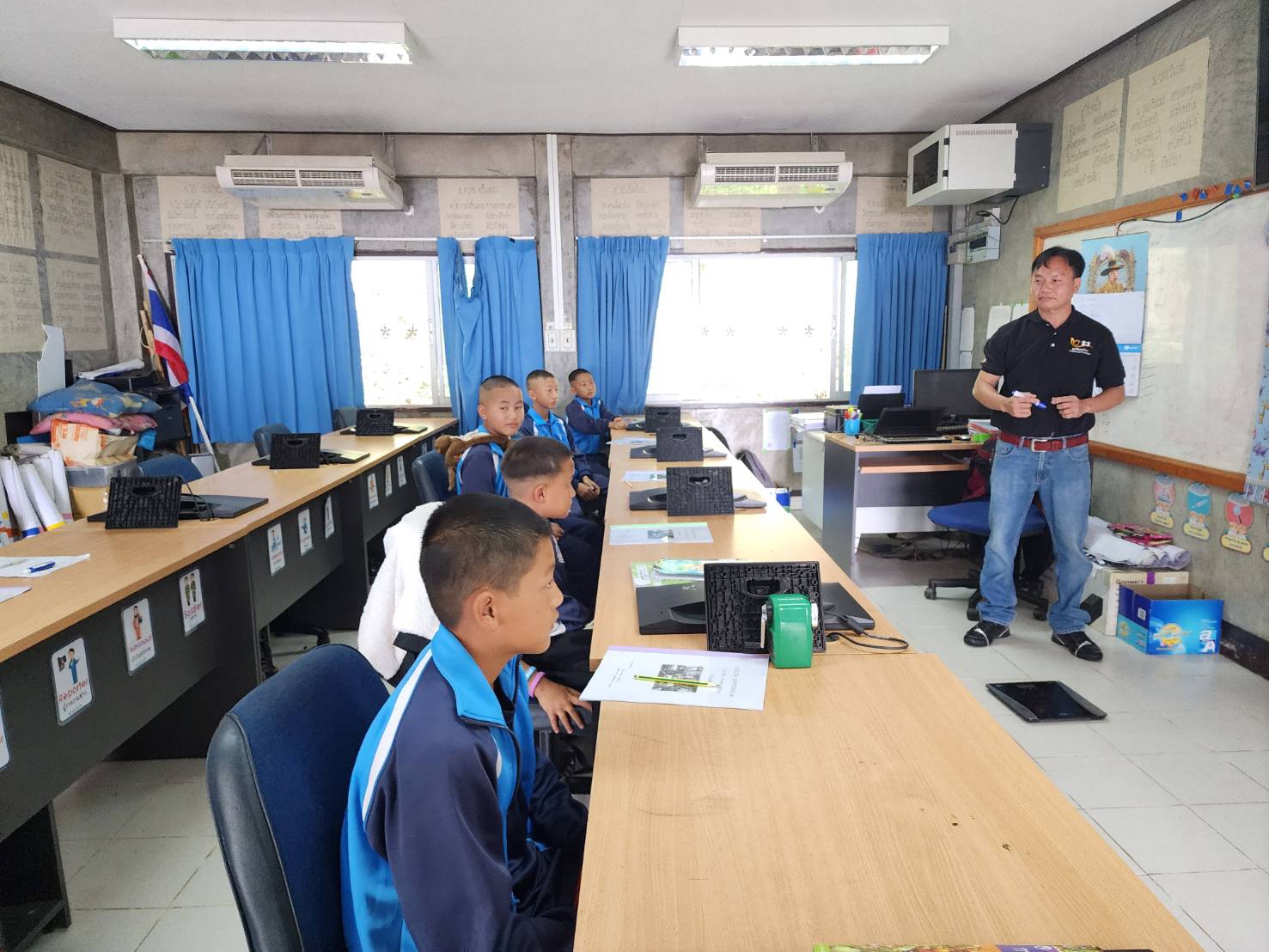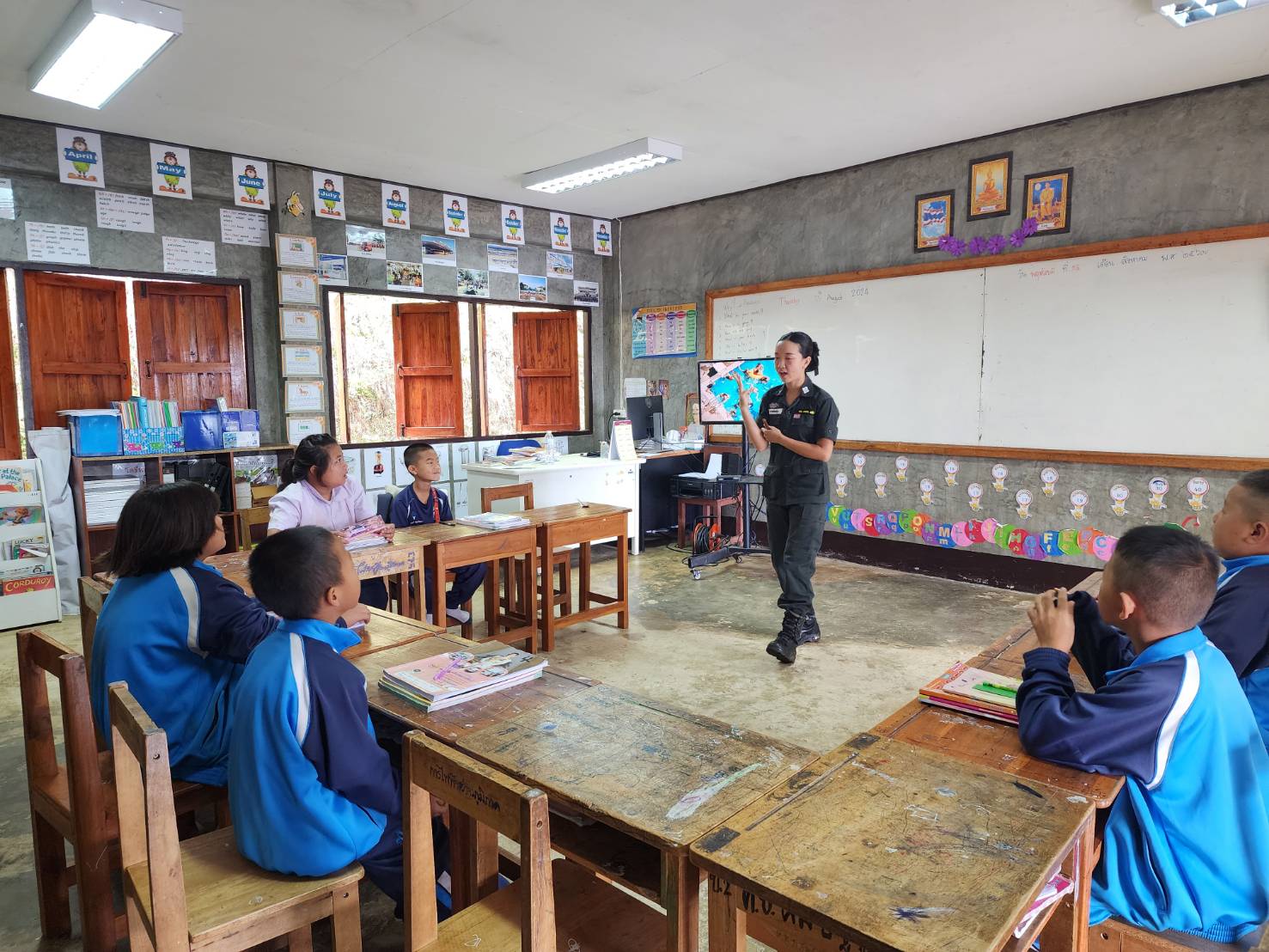 ช่วงเช้า วันที่ 15 ส.ค.ที่ผ่านมา พล.ต.ต.ประกอบ พลเตชา ที่ปรึกษามูลนิธิพุทธรักษา อดีตผู้บังคับการตำรวจตระเวนชายแดน ภาค 3 พร้อมด้วยคุณฉันท์ชนก ดุรงค์ฤทธิ์ชัย ผู้จัดการอาวุโสมูลนิธิพุทธรักษา เดินทางมาเยี่ยมชมการสอนภาษาอังกฤษ ตามโครงการเพิ่มศักยภาพครูผู้สอนภาษาอังกฤษของมูลนิธิพุทธรักษา ที่ศูนย์การเรียนตำรวจตระเวนชายแดนบ้านฟ้าไทยงาม อ.เวียงแก่น จ.เชียงราย โดยมี ร.ต.ต.พลาธิป อภิภัชผ่องใส ครูใหญ่ ให้การต้อนรับ และนำชม การสาธิตการสอนภาษาอังกฤษของครูมูลนิธิฯ และครู ตชด.ที่เข้าร่วมโครงการ