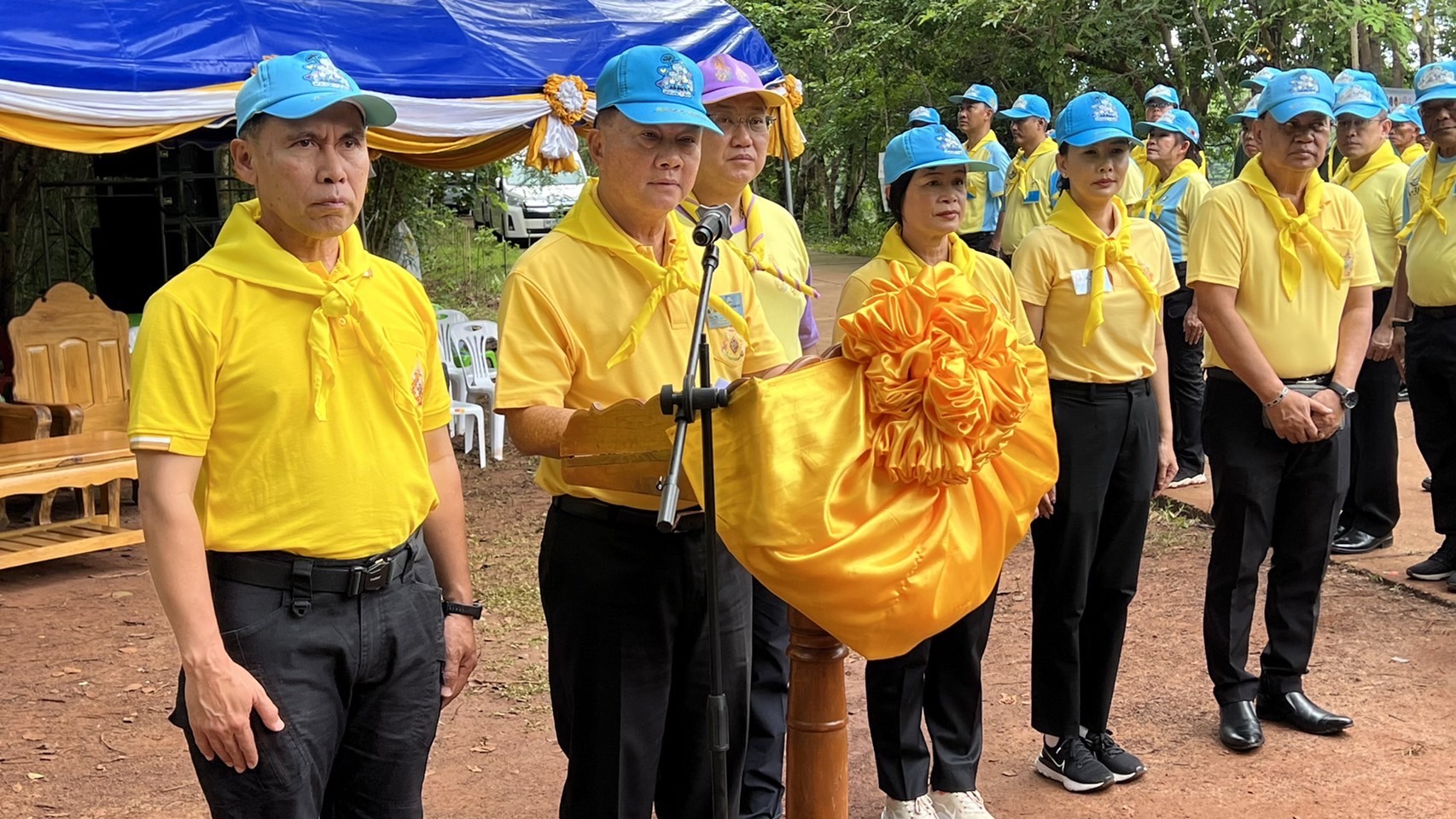 จากนั้นเวลา 10.00 น. นายกฤษดา สมประสงค์ ผู้อำนวยการสถาบันพัฒนาองค์กรชุมชมชน (องค์การมหาชน) กล่าวรายงานโครงการต่อประธานในพิธี พล.ต.อ. อดุลย์ แสงสิงแก้ว อดีตรัฐมนตรีว่าการกระทรวงการพัฒนาสังคมและความมั่นคงของมนุษย์ อดีตสมาชิกวุฒิสภา และอดีตผู้บัญชาการตำรวจแห่งชาติ ประธานกล่าวเปิดโครงการร้อยดวงใจ จิตอาสาพัฒนาชุมชนท้องถิ่น "ปลูกป่าเฉลิมพระเกียรติ พระบาทสมเด็จพระเจ้าอยู่หัว" เนื่องในโอกาสมหามงคลเฉลิมพระชนมพรรษา 6 รอบ 72 พรรษา โดยมีผู้แทนเครือข่ายป่าดงเซกา จังหวัดนครพนม รายงานผลการดำเนินงาน และประกาศเจตนารมณ์ในการเพิ่มพื้นที่สีเขียวในป่าดงเซกา