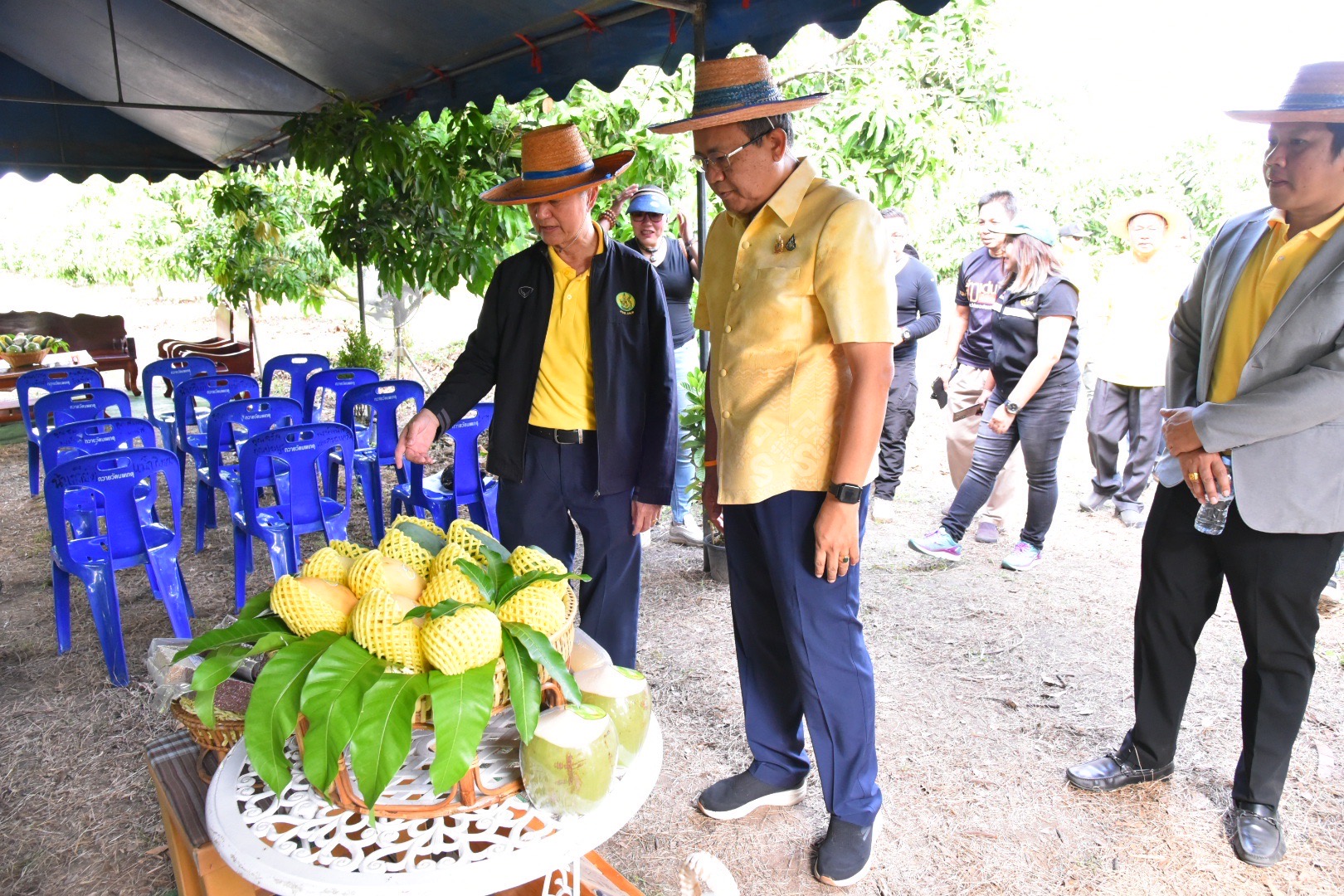 ที่สวนทิวาศิลป์ ม.9 ต.หัวสำโรง อ.แปลงยาว จ.ฉะเชิงเทรา นายชลธี ยังตรง ผู้ว่าราชการจังหวัดฉะเชิงเทรา นำคณะสื่อมวลชนร่วมกิจกรรม "ผู้ว่าพาชมสวน" โดยมีวัตถุประสงค์เพื่อประชาสัมพันธ์ ผลผลิตทางการเกษตร ส่งเสริมและสนับสนุนเกษตรกรในพื้นที่ พร้อมทั้งเชิญชวนประชาชนบริโภคสินค้าเกษตรของจังหวัดฉะเชิงเทรา หรือที่รู้จักกันดีในชื่อ “สินค้าแปดริ้ว” กิจกรรมครั้งนี้ผู้ว่าฯได้พูดถึงความพร้อมของ จ.ฉะเชิงเทรา ในการเป็นแหล่งผลิตสินค้าเกษตรที่สำคัญ โดยเฉพาะอย่างยิ่งข้าว มะพร้าว และมะม่วง ซึ่งเป็นสินค้าที่มีอัตลักษณ์ของจังหวัดฯ และได้รับการขึ้นทะเบียนเป็นสิ่งบ่งชี้ทางภูมิศาสตร์ (GI) ได้แก่ มะพร้าวน้ำหอม และมะม่วงน้ำดอกไม้สีทอง นอกจากนี้ยังมีมะม่วงพันธุ์อื่น ๆ เช่น มะม่วงขายตึก มะม่วงแรด และมะม่วงเขียวเสวย ที่อยู่ระหว่างการขอรับการขึ้นทะเบียน GI