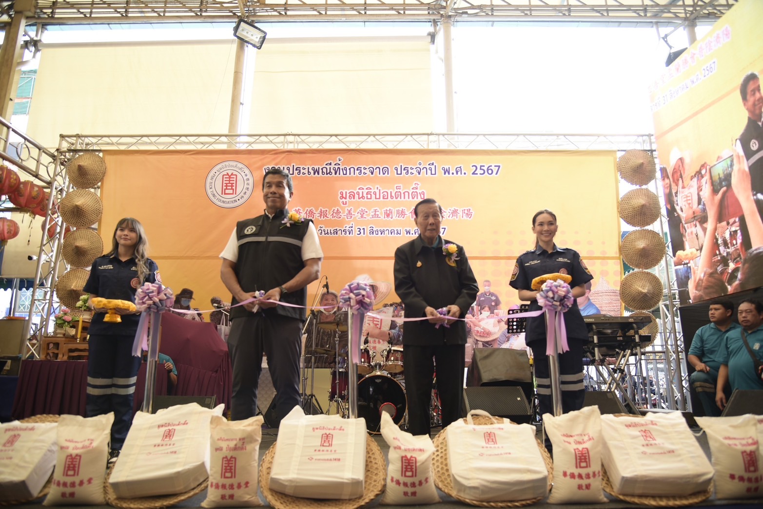 โดยมีนายชัชชาติ สิทธิพันธุ์ ผู้ว่าราชการกรุงเทพมหานคร เป็นประธานในพิธี พร้อมด้วยแขกผู้มีเกียรติ ผู้แทนหน่วยงานในเครือมูลนิธิฯ และอาสาสมัครกิตติมศักดิ์ อาทิ นางศิริวรรณ โอภาสวงศ์ และ นางศิริพร โอภาสวงศ์ ร่วมในพิธี ที่มูลนิธิป่อเต็กตึ๊ง พลับพลาไชย กรุงเทพฯ บรรยากาศภายในงานมีผู้มีจิตศรัทธา ร่วมแจกจ่ายอาหาร และเครื่องอุปโภคบริโภคให้กับประชาชนที่มารอรับสิ่งของ รวมถึงเจ้าหน้าที่ และอาสาสมัครมูลนิธิฯ จัดทีมดูแลประชาชนตั้งแต่เมื่อวันที่ 30 ส.ค.ที่ผ่านมา