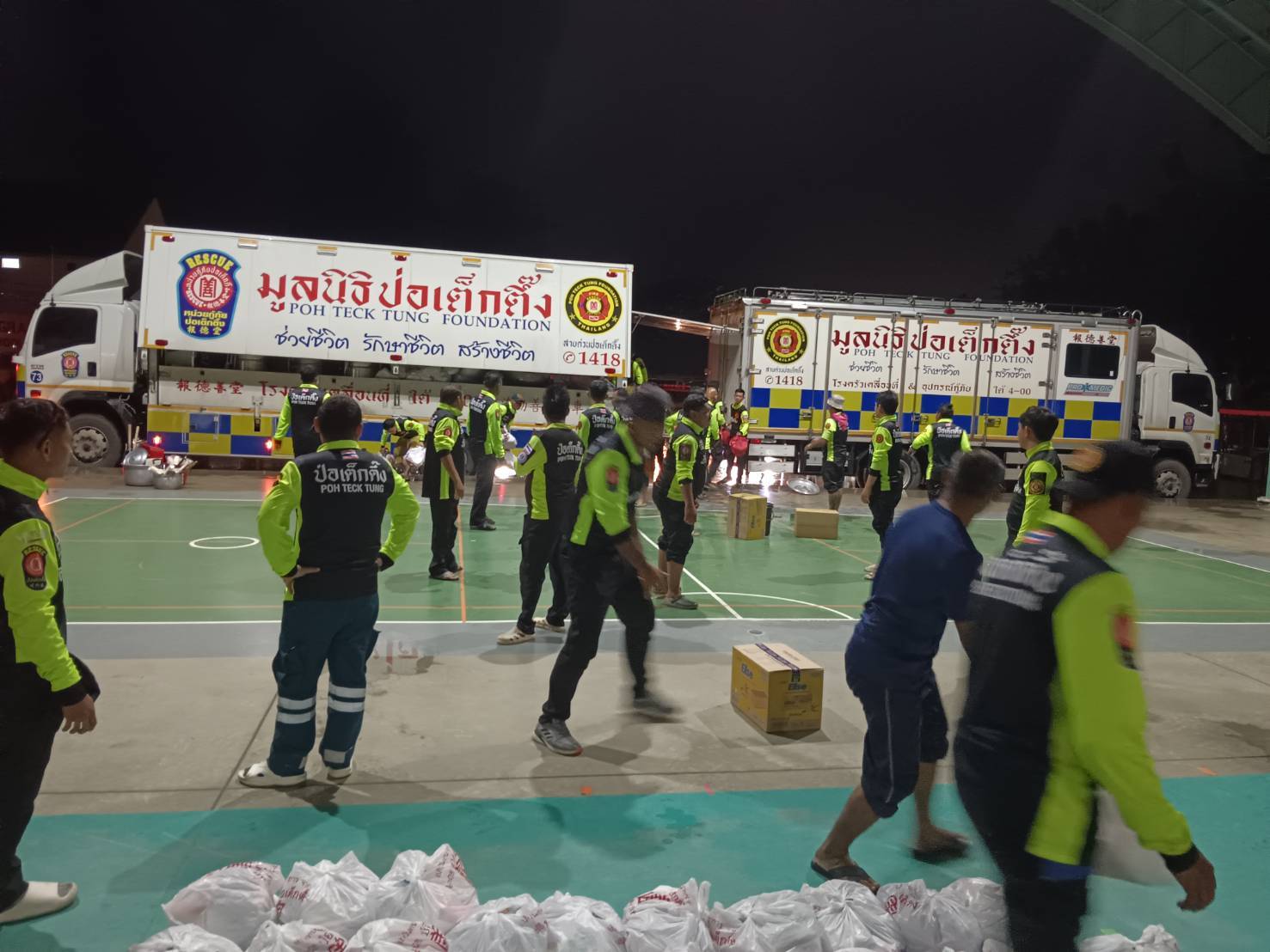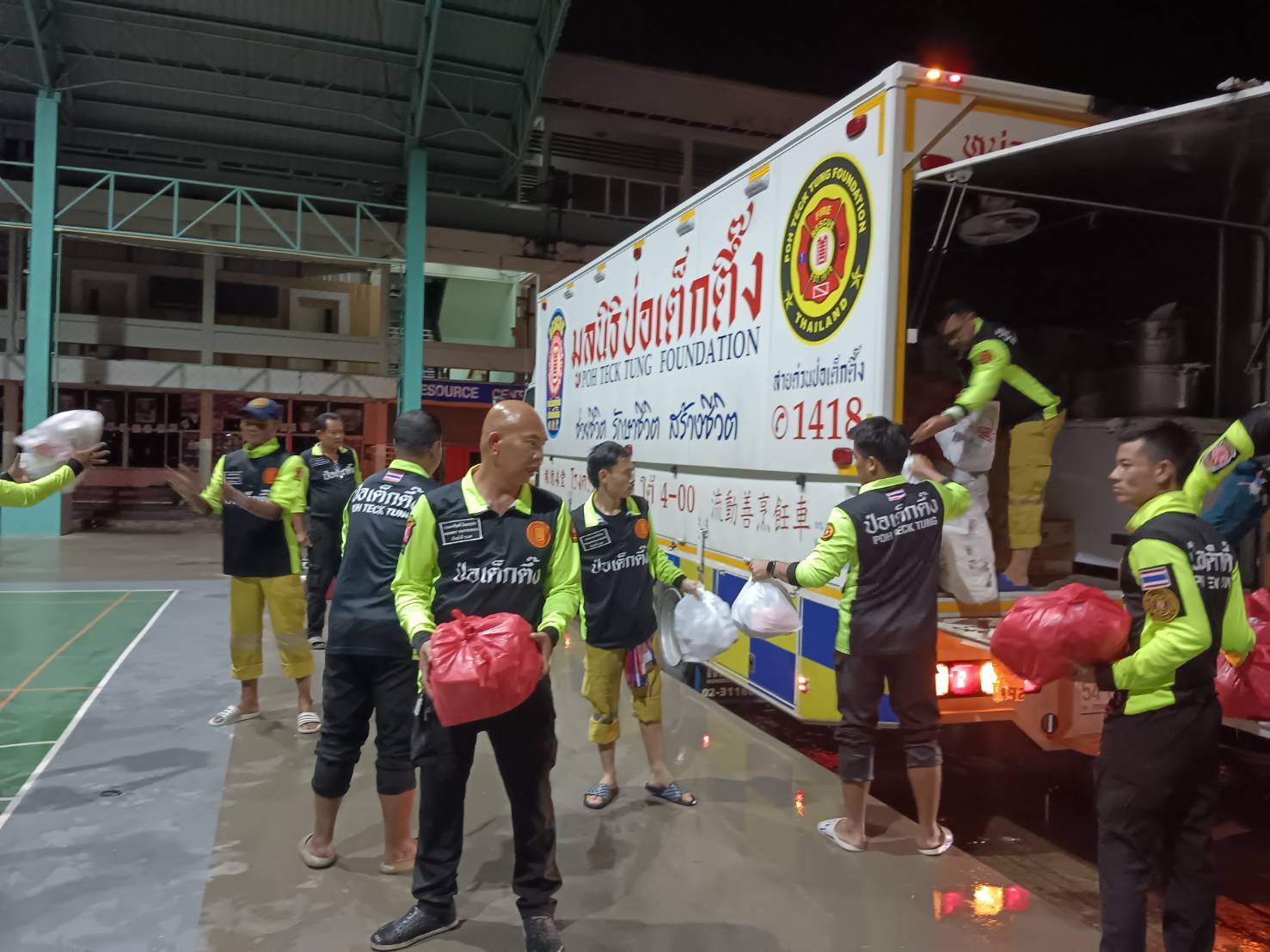 โดยในขณะนี้มูลนิธิป่อเต็กตึ๊งยังคงอยู่ระหว่างปฏิบัติการภารกิจอพยพในพื้นที่ต่อเนื่อง รวมทั้งประกอบอาหารปรุงสุก พร้อมจัดเตรียมน้ำดื่ม และถุงยังชีพ เพื่อบรรทุกรถและเรือลงพื้นที่แจกจ่ายให้แก่ผู้ประสบภัยน้ำท่วมใน และเฝ้าติดตามสถานการณ์อย่างต่อเนื่อง เพื่อประเมินและเข้าให้ความช่วยเหลือผู้ประสบภัยด้านต่าง ๆ ต่อไป.