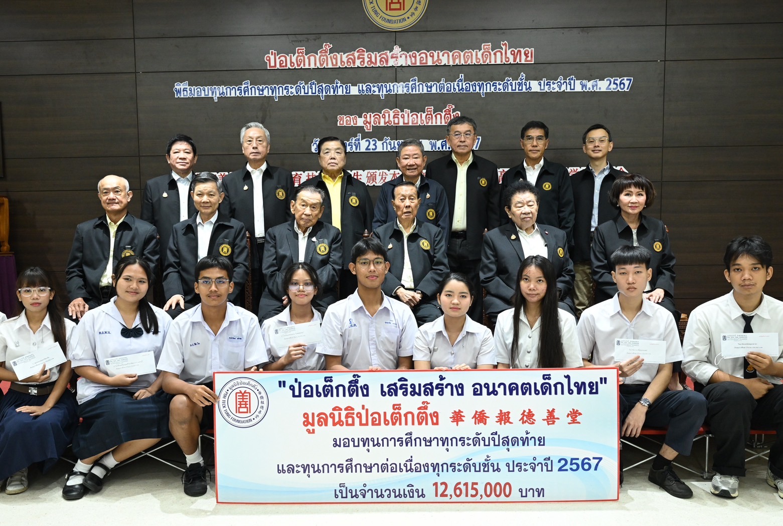 มูลนิธิป่อเต็กตึ๊ง ต่อยอดโอกาส สร้างชีวิต ให้แก่เยาวชนที่ประพฤติดีแต่ขาดแคลนทุนทรัพย์... มอบทุนการศึกษา ทุกระดับปีสุดท้าย และทุนฯต่อเนื่องทุกระดับชั้น ประจำปี 2567 รวมงบประมาณกว่า 12.6 ล้านบาท