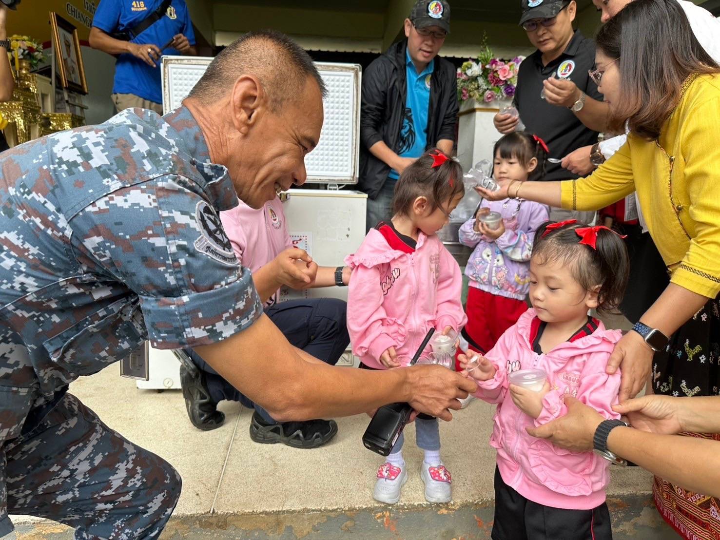 กองทัพอากาศเคียงข้างประชาชน...ฝูงบิน 416 เชียงราย-ภาคีเครือข่ายหลักสูตร พคบ.รุ่น 2 จัดกิจกรรมแจกขนม-ไอศกรีม ให้กำลังใจเด็กนักเรียน ในโอกาสเปิดเรียนวันแรก หลังหยุดหลายวันเนื่องจากสถานการณ์น้ำท่วม