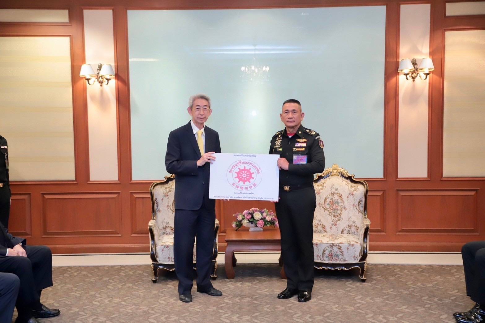 เมื่อช่วงเช้า วันที่ 25 ก.ย.ที่ผ่านมา พล.อ.เจริญชัย หินเธาว์ ผู้บัญชาการทหารบก รับมอบเงินบริจาคจากสมาคมวิเทศพาณิชย์ไทย - จีน,หอหอการค้าไทย-จีน,สหสมาคมตระกูลแช่แห่งประเทศไทย,สมาคมแต้จิ๋วแห่งประเทศไทย รวมจำนวน 2,000,000 บาท และรับมอบมอบเตียงกระดาษ,ห้องน้ากระดาษ,พร้อมด้วยเครื่องอุปโภค-บริโภค ชุดยาเวชภัณฑ์ และสิ่งของเครื่องใช้ที่จำเป็นแก่ผู้ประสบอุทกภัย มูลค่า 2,000,000 บาทจากมูลนิธิเส้นด้าย รวมทั้งสิ้น 4,000,000 บาท เพื่อให้กองทัพบกนำไปช่วยเหลือผู้ที่ได้รับความเดือดร้อนจากอุทกภัยในพื้นที่ต่าง ๆ ที่ ห้องรับรอง 212-213 กองบัญชาการกองทัพบก