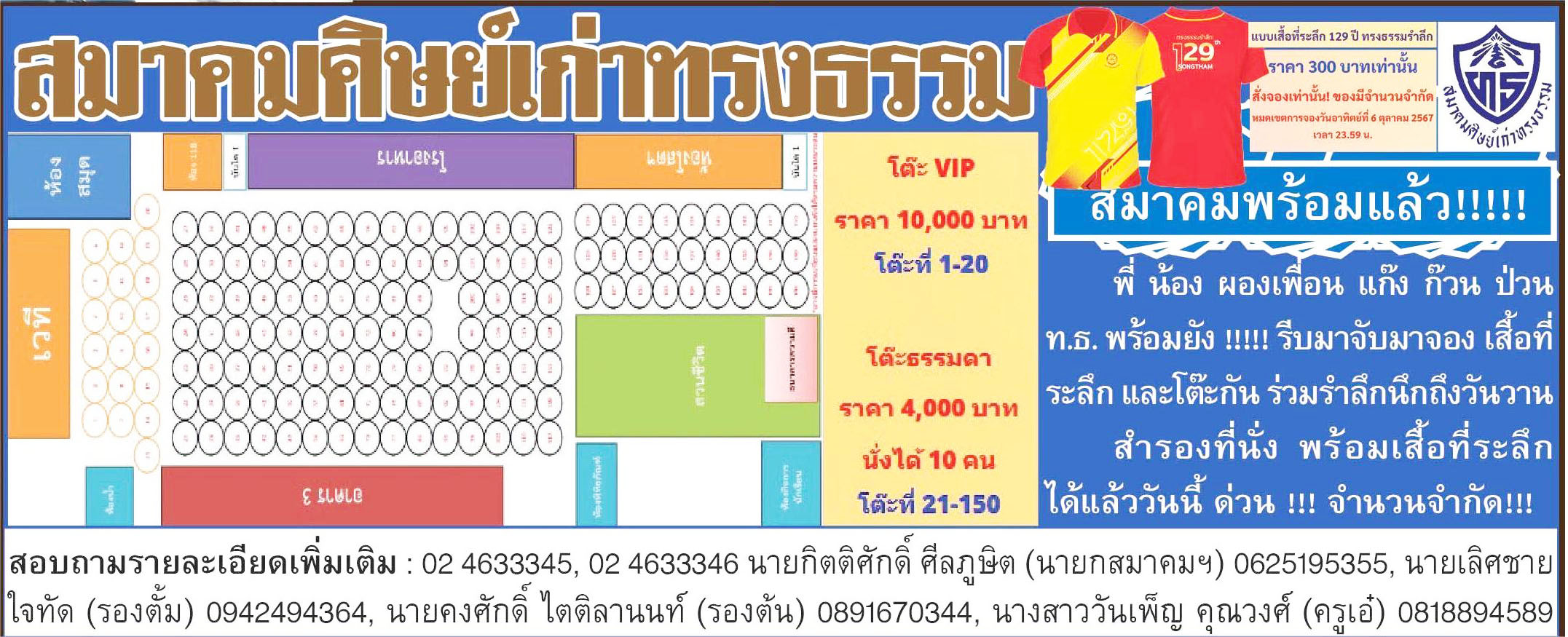 ขอเชิญศิษย์เก่าโรงเรียนวัดทรงธรรม ร่วมงานเหลือง-แดง ครบ 129 ปี "ทรงธรรมรำลึก วันวานยังหวานอยู่" วันที่ 2 พ.ย.นี้ ณ ลานกีฬาภายในโรงเรียนฯ