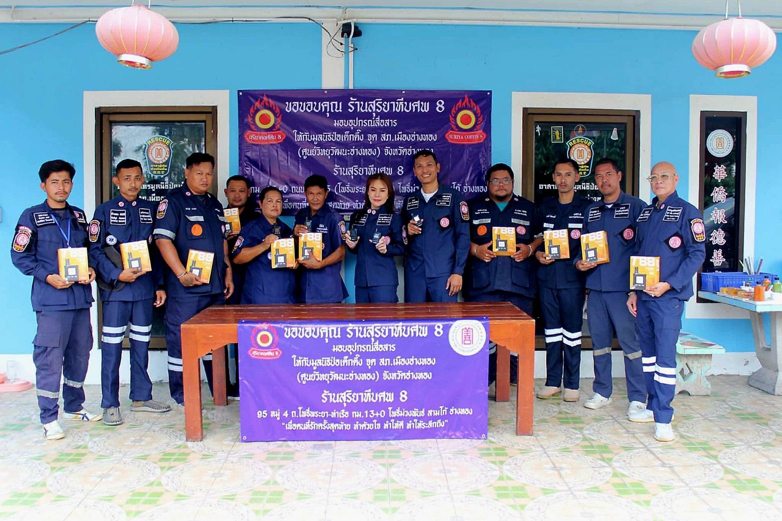 ร้านสุริยาหีบศพ มอบอุปกรณ์สื่อสารให้กับมูลนิธิป่อเต็กตึ้ง จุด สภ.เมืองอ่างทอง ใช้ในการประสานงานให้การช่วยเหลือประชาชนในพื้นที่