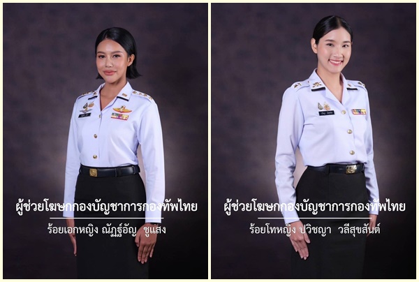 4.ร้อยเอก หญิง ณัฏฐ์อัญ ชูแสง เป็น ผู้ช่วยโฆษกกองบัญชาการกองทัพไทย 5.ร้อยโทหญิง ปวิชญา วลีสุขสันต์ เป็น ผู้ช่วยโฆษกกองบัญชาการกองทัพไทย 6. เรืออากาศตรีหญิง กฤษมน เนตรสว่าง เป็น ผู้ช่วยโฆษกกองบัญชาการกองทัพไทย 7. พันจ่าอากาศเอกหญิง เสาวลักษณ์ คำหวาน เป็น ผู้ช่วยโฆษกกองบัญชาการกองทัพไทย 8. จ่าอากาศเอก ทศพล พันธุ์รัตน์ เป็น ผู้ช่วยโฆษกกองบัญชาการกองทัพไทย 9. นางสาวอิศริญากรณ์ อินทโชติ เป็น ผู้ช่วยโฆษกกองบัญชาการกองทัพไทยใหญ่