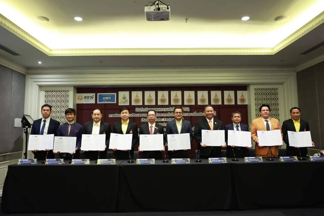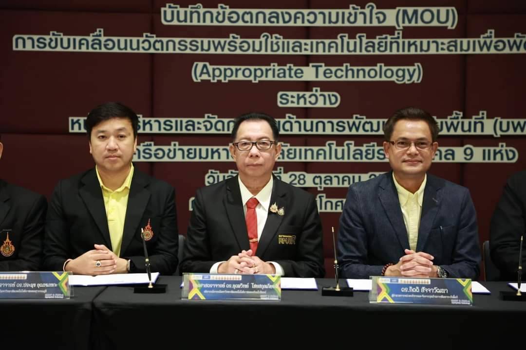 วันที่ 28 ต.ค.ที่ผ่านมา มหาวิทยาลัยเทคโนโลยีราชมงคล รัตนโกสินทร์ นำโดย รศ.ดร.อุดมวิทย์ ไชยสกุลเกียรติ อธิการบดี ในนามประธานอธิการบดีมหาวิทยาลัยเทคโนโลยีราชมงคล (ทปอ.มทร.) ร่วมลงนามในบันทึกข้อตกลงความร่วมมือ (MOU) การขับเคลื่อนนวัตกรรมพร้อมใช้ และเทคโนโลยีที่เหมาะสมเพื่อพัฒนาพื้นที่ (Appropriate Technology) ระหว่างหน่วยบริหารและจัดการทุนด้านการพัฒนาระดับพื้นที่ (บพท.) กับเครือข่ายมหาวิทยาลัยเทคโนโลยีราชมงคล โดยมีผู้ร่วมลงนาม ได้แก่ 1.ดร.กิตติ สัจจาวัฒนา ผู้อำนวยการหน่วยบริหารและจัดการทุนด้านการพัฒนาระดับพื้นที่ ปฏิบัติหน้าที่แทนผู้อำนวยการสำนักงานสภานโยบายการอุดมศึกษา วิทยาศาสตร์ วิจัยและนวัตกรรมแห่งชาติ