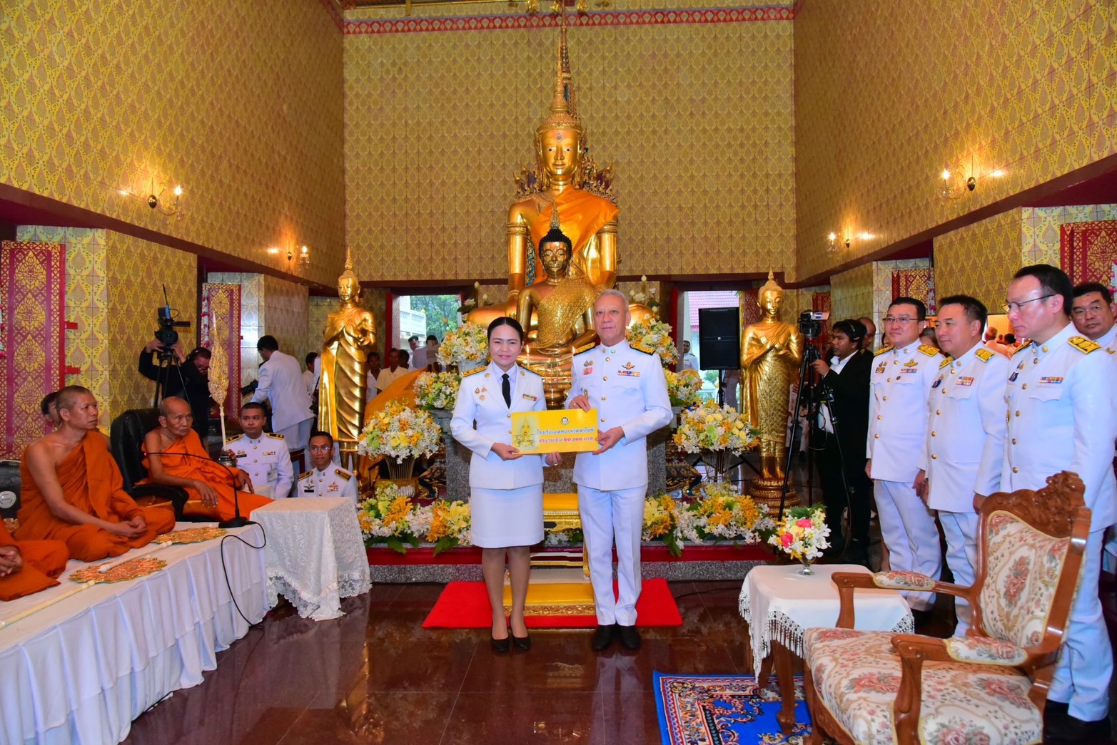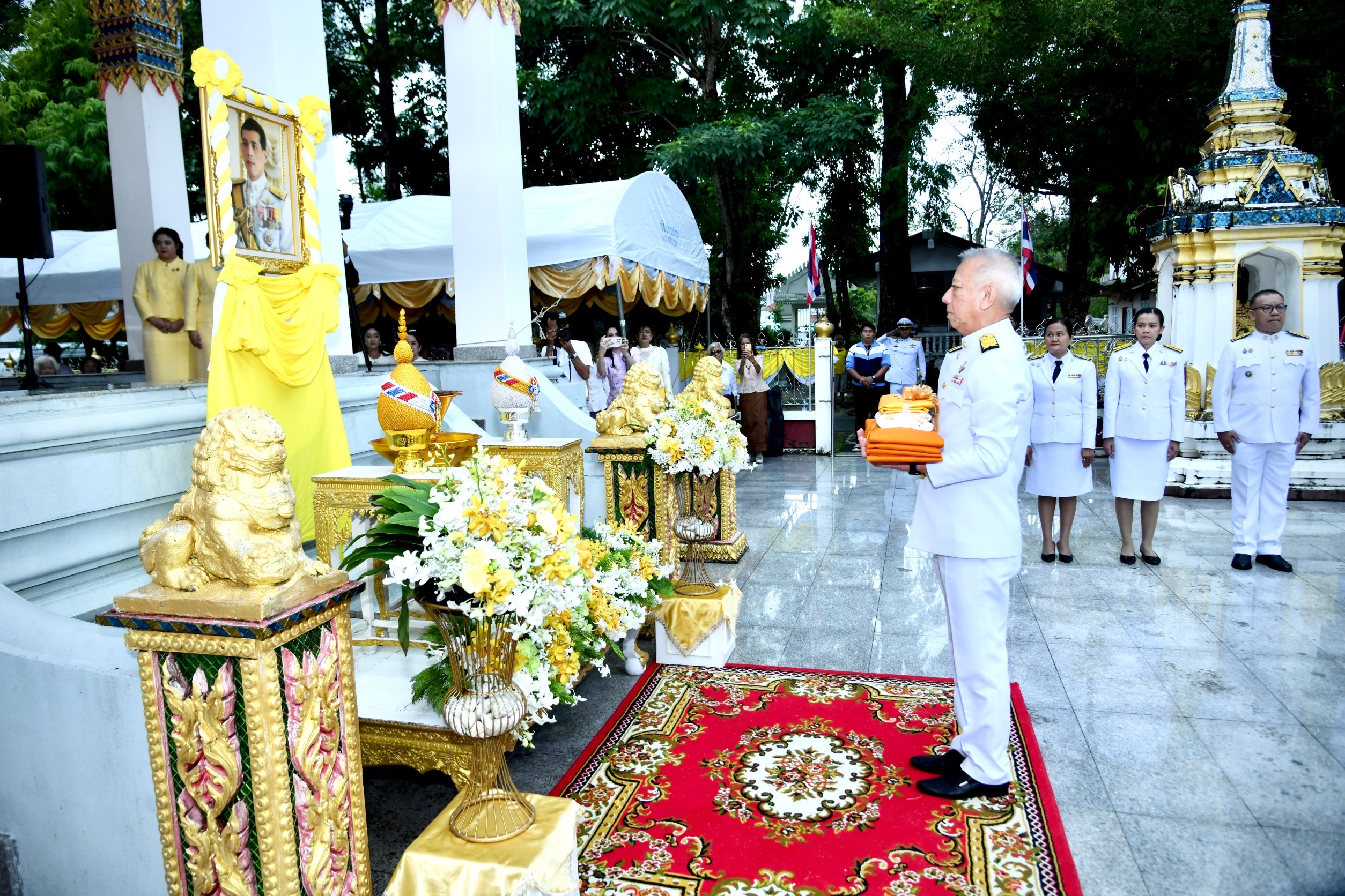 ในการนี้มีนายอารี ไกรนรา เลขานุการรัฐมนตรีว่าการกระทรวงแรงงาน นายสมชาย มรกตศรีวรรณ อธิบดีกรมการจัดหางาน นายสมชาย ลีหล้าน้อย นายศรีธรรม ราชแก้ว นายชวกิจจ์ สุวรรณคีรี รองผู้ว่าราชการจังหวัดนครศรีธรรมราช พร้อมด้วยผู้บริหารกระทรวงแรงงาน หน่วยงานในสังกัดกระทรวงแรงงานจังหวัดนครศรีธรรมราช หัวหน้าส่วนราชการในจังหวัดนครศรีธรรมราช และพุทธศาสนิกชนชาวจังหวัดนครศรีธรรมราช เข้าร่วมพิธีในครั้งนี้ด้วย ทั้งนี้ได้มีผู้มีจิตกุศลร่วมถวายจตุปัจจัยบำรุง และบูรณะพระอาราม ทำบุญกฐินพระราชทาน ประจำปี 2567 รวมเป็นเงินจำนวนทั้งสิ้น 5,876,626 บาท