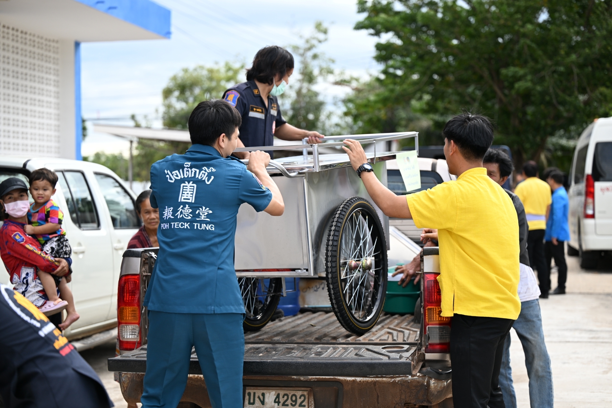 นอกจากนี้มูลนิธิป่อเต็กตึ๊ง ยังได้มอบรถเข็นวีลแชร์แก่คนพิการ จำนวน 10 คัน รวมมูลค่าการดำเนินการช่วยเหลือชาวบึงกาฬในครั้งนี้ทั้งสิ้น 647,630 บาท โดยมีนายจุมพฏ วรรณฉัตรสิริ ผู้ว่าราชการจังหวัดบึงกาฬ พร้อมด้วยนางสาวนิภา ทองก้อน ผู้อำนวยการสำนักเสริมสร้างความเข้มแข็งชุมชน เป็นประธานร่วมในพิธี คณะมูลนิธิสว่างศรีวิไลธรรมสถาน จังหวัดบึงกาฬ เป็นผู้ประสานงานและร่วมในพิธี รวมทั้งประชาชน เยาวชน และผู้แทนจากสถาบันการศึกษา เป็นผู้รับมอบ บริเวณหอประชุมที่ว่าการอำเภอเมือง จังหวัดบึงกาฬ