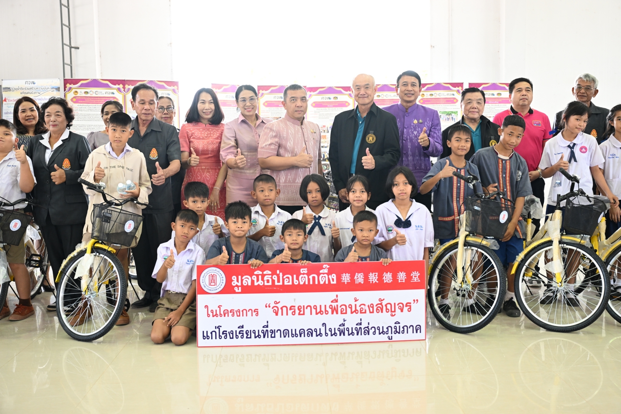 มูลนิธิป่อเต็กตึ๊งสร้างชีวิต อย่างยั่งยืน มอบอุปกรณ์ประกอบอาชีพให้แก่ครัวเรือนยากจน มอบจักรยานให้แก่โรงเรียนในพื้นที่ชนบท และมอบรถเข็นวีลแชร์แก่ผู้พิการ ในพื้นที่ จ.บึงกาฬ