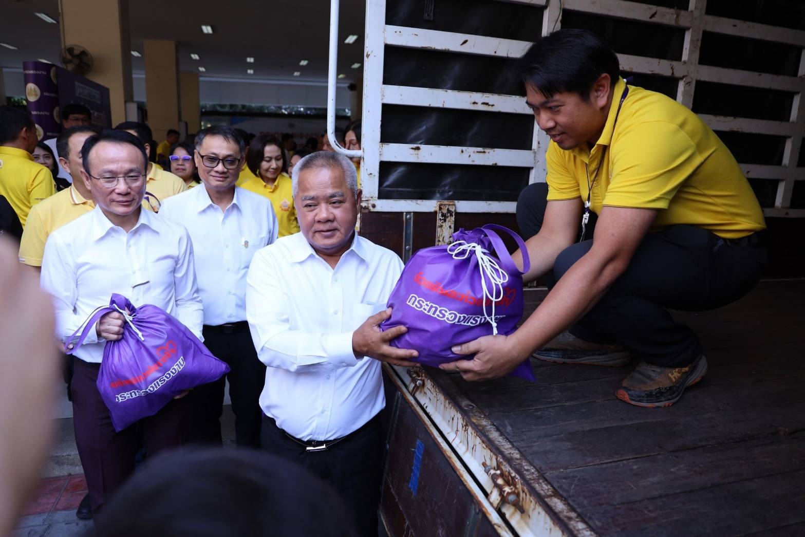 วันที่ 2 ธ.ค.นายพิพัฒน์ รัชกิจประการ รัฐมนตรีว่าการกระทรวงแรงงาน พร้อมด้วยนายสิรภพ ดวงสอดศรี ผู้ช่วยรัฐมนตรีประจำกระทรวงแรงงาน นายอารี ไกรนรา เลขานุการรัฐมนตรีว่าการกระทรวงแรงงาน นายบุญสงค์ ทัพชัยยุทธ์ ปลัดกระทรวงแรงงาน และผู้บริหาร เจ้าหน้าที่ กระทรวงแรงงาน ระดมร่วมมือบุคลากรกระทรวงฯบรรจุถุงยังชีพ อีกกว่า 3,100 ถุง รวมมูลค่าแล้วกว่า 1.8 ล้านบาท พร้อมส่งขึ้นรถบรรทุก จำนวน 3 คัน ส่งถึงพี่น้องน้ำท่วมภาคใต้ บริเวณโถงชั้นล่าง อาคารกระทรวงแรงงาน