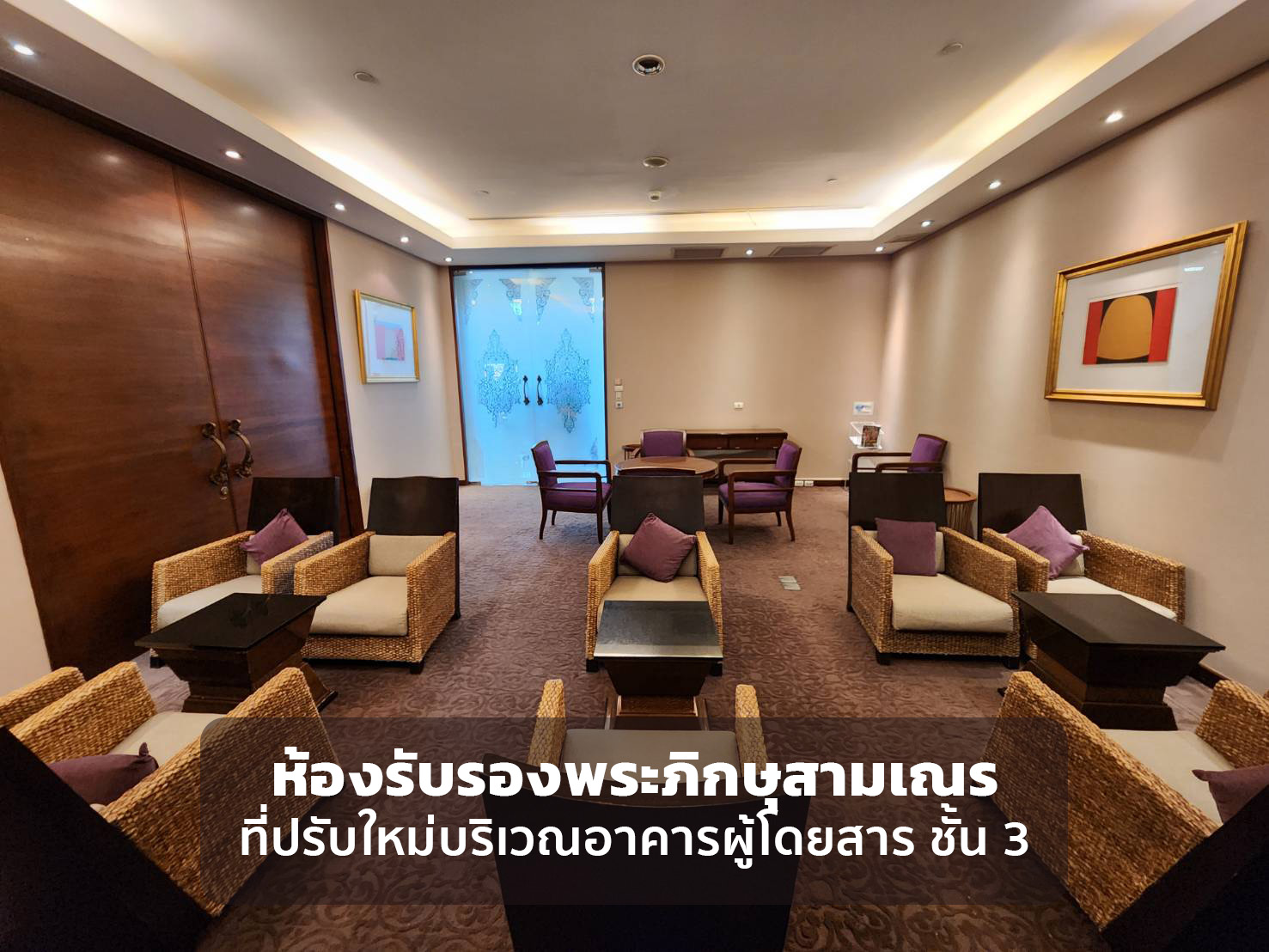ทั้งนี้ ทสภ. ตระหนักถึงความสำคัญในการให้บริการและอำนวยความสะดวกแด่พระภิกษุสงฆ์ ซึ่งเป็นที่เคารพศรัทธาของพุทธศาสนิกชน โดยนอกจากจัดให้มีห้องรับรองพระภิกษุฯ บริเวณชั้น 3 แล้ว ทสภ. ยังจัดให้มีห้องรับรองพระภิกษุฯ บริเวณชั้น 2 พื้นที่ผู้โดยสารภายในประเทศ และได้จัดห้องสวดมนต์สำหรับพระภิกษุฯ และพุทธศาสนิกชน บริเวณชั้น 2 และ ชั้น 4 ภายในอาคารเทียบเครื่องบินรองหลังที่ 1 (SAT-1) ด้วย.