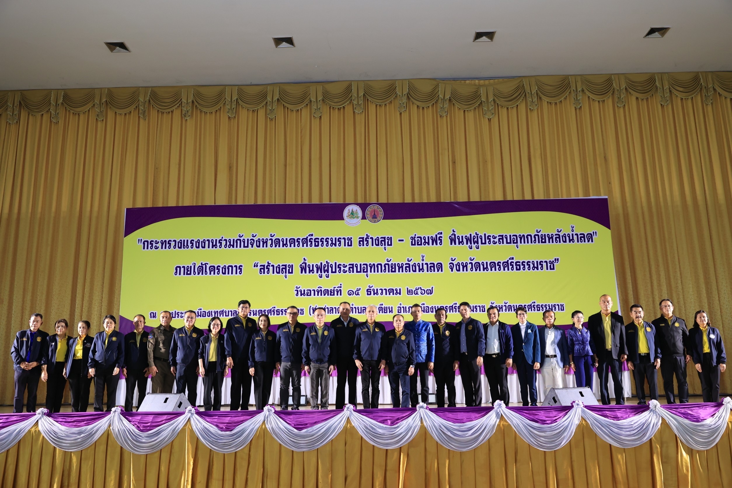 วันที่ 15 ธ.ค.นายพิพัฒน์ รัชกิจประการ รัฐมนตรีว่าการกระทรวงแรงงาน ลงพื้นที่จังหวัดนครศรีธรรมราช เปิดงาน สร้างสุข -ซ่อมฟรี ฟื้นฟูผู้ประสบอุทกภัยหลังน้ำลด” ภายใต้โครงการ “สร้างสุข ฟื้นฟูผู้ประสบอุทกภัยหลังน้ำลด จังหวัดนครศรีธรรมราช” เพื่อช่วยเหลือประชาชน โดยการออกหน่วยบริการเคลื่อนที่ให้บริการฟรี ซ่อมอุปกรณ์ไฟฟ้า อุปกรณ์ในการประกอบอาชีพ และรถจักรยานยนต์ โดยมีนายอารี ไกรนรา เลขานุการรัฐมนตรีว่าการกระทรวงแรงงาน นายภูมิพัฒน์ เหมือนจันทร์ โฆษกกระทรวงแรงงาน นายสมชาย มรกตศรีวรรณ อธิบดีกรมการจัดหางาน เรือเอก สาโรจน์ คมคาย อธิบดีกรมสวัสดิการและคุ้มครองแรงงาน นางมารศรี ใจรังษี เลขาธิการสำนักงานประกันสังคม ในการนี้นายเดชา พฤกษ์พัฒนรักษ์ อธิบดีกรมพัฒนาฝีมือแรงงาน มอบหมายให้นายชาติวุฒิ ทองกัน ผู้ตรวจราชการกรมพัฒนาฝีมือแรงงาน เข้าร่วมกับหัวหน้าส่วนราชการกระทรวงแรงงานจังหวัดนครศรีธรรมราช องค์กรปกครองส่วนท้องถิ่น ผู้นำชุมชน บัณฑิตแรงงาน อาสาสมัครแรงงาน และประชาชนในพื้นที่ ให้การต้อนรับ โดยมีนายสุวัฒน์ จันทร์สุข รองผู้ว่าราชการจังหวัดนครศรีธรรมราชกล่าวต้อนรับ โดยนายบุญสงค์ ทัพชัยยุทธ์ ปลัดกระทรวงแรงงาน มอบหมายให้ นายสันติ นันตสุวรรณ ผู้ตรวจราชการกระทรวงแรงงาน กล่าวรายงานในครั้งนี้ ที่หอประชุมเมืองเทศบาลนคร นครศรีธรรมราช (ทุ่งท่าลาด) ต.นาเคียน อ.เมือง จ.นครศรีธรรมราช