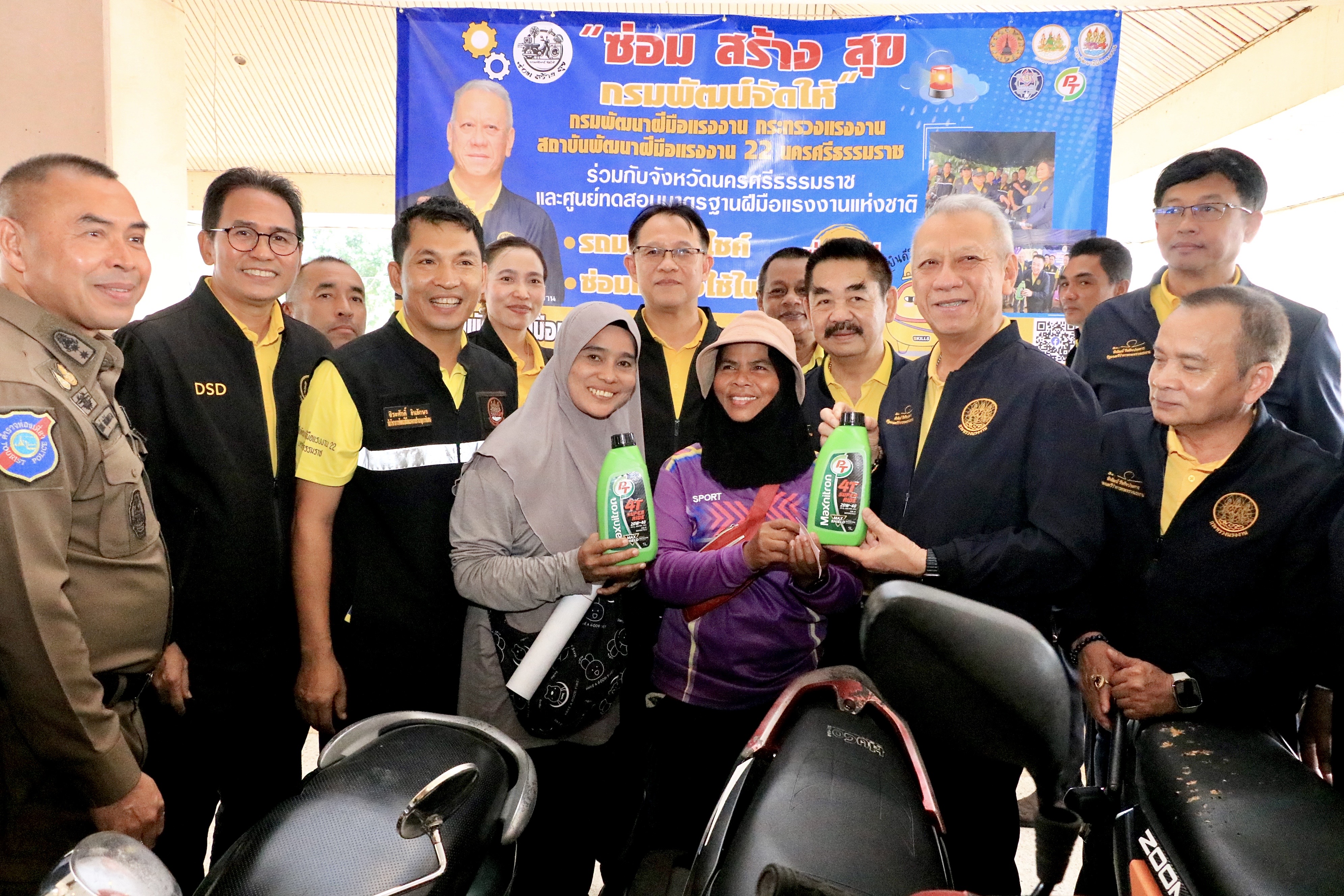 โดยในวันนี้ได้ปล่อยแถวขบวนรถคาราวาน “กระทรวงแรงงานร่วมกับ จังหวัดนครศรีธรรมราช จัดงานสร้างสุข -ซ่อมฟรี ฟื้นฟูผู้ประสบอุทกภัยหลังน้ำลด” ภายใต้โครงการ “สร้างสุข ฟื้นฟูผู้ประสบอุทกภัยหลังน้ำลด จังหวัดนครศรีธรรมราช” โดยส่งช่างซ่อมของกรมพัฒนาฝีมือแรงงานร่วมกับเครือข่ายพัฒนาฝีมือแรงงาน เช่น ผู้ทดสอบมาตรฐานฝีมือแรงงาน ผู้รับการฝึกอบรม ร่วมให้บริการซ่อมอุปกรณ์ไฟฟ้า รถจักรยานยนต์ เครื่องจักรการเกษตรขนาดเล็ก ตรวจสภาพความปลอดภัยของไฟฟ้าภายในบ้านเรือนที่ได้รับความเสียหายใน 19 อำเภอของจังหวัดนครศรีธรรมราชตลอดเดือนธันวาคมนี้