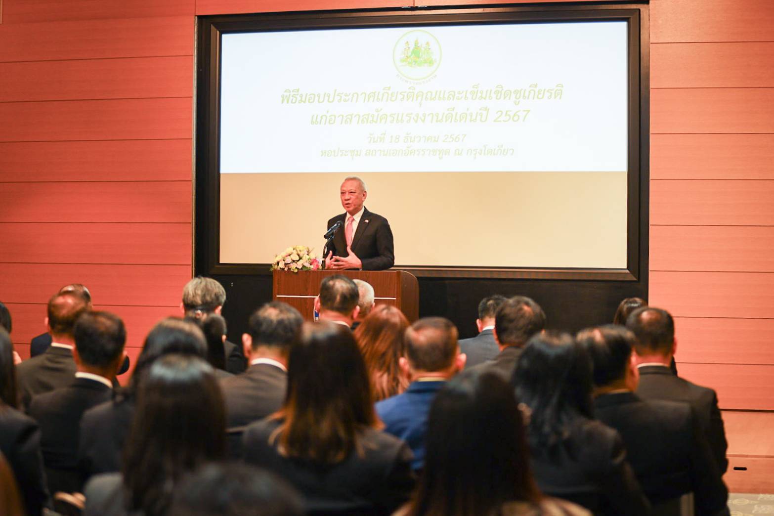 นายพิพัฒน์ กล่าวต่อว่า มีอาสาสมัครแรงงานในต่างประเทศญี่ปุ่น ที่สนับสนุนการทำงานของสำนักงานแรงงาน ซึ่งวันนี้ทางกระทรวงแรงงาน มีการจัดพิธีมอบประกาศเกียรติคุณและเข็มเชิดชูเกียรติแก่อาสาสมัครแรงงานดีเด่น 2567 โดยขอแสดงความยินดีกับคุณ มาลี วาดะ ที่ได้รับรางวัลในปีนี้ พร้อมได้ให้เวลารับฟังปัญหาต่างๆ และความต้องการของอาสาสมัครแรงงาน ที่สะท้อนการชีวิตในการดูแรงงานไทยในประเทศญี่ปุ่น
