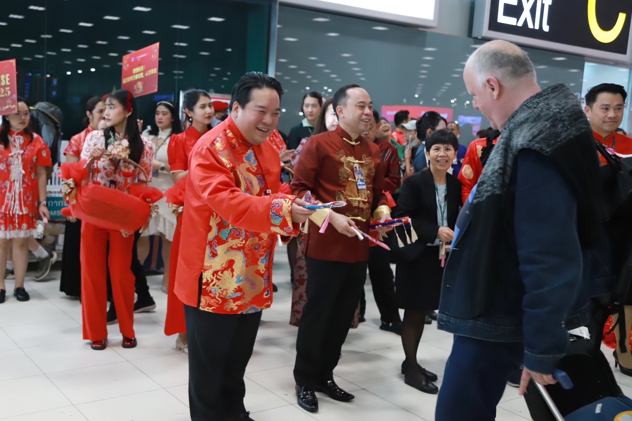 เมื่อเวลา 10.00 น.วันที่ 29 ม.ค.ท่าอากาศยานสุวรรณภูมิ (ทสภ.) จัดกิจกรรมต้อนรับผู้โดยสารช่วงเทศกาลตรุษจีน จัดแสดงเชิดสิงโตพร้อมมอบของที่ระลึกต้อนรับผู้โดยสารที่เดินทางมากับเที่ยวบิน HU7939 สายการบิน Hainan Airlines เส้นทางมณฑลไหโข่ว สาธารณรัฐประชาชนจีน - ทสภ. โดยมี ดร.กีรติ กิจมานะวัฒน์ กรรมการผู้อำนวยการใหญ่ บริษัท ท่าอากาศยานไทย จำกัด (มหาชน) (AOT) พร้อมด้วยนายกิตติพงศ์ กิตติขจร ผู้อำนวยการท่าอากาศยานสุวรรณภูมิ และผู้แทนสายการบิน ร่วมให้การต้อนรับผู้โดยสาร บริเวณทางออกเครื่องบิน Gate D4 ชั้น 2 อาคารเทียบเครื่องบิน D โดยของที่ระลึกที่มอบให้ผู้โดยสารเป็นพัดมงคล ซึ่ง “พัด” ในวัฒนธรรมจีนเป็นการสื่อถึงความเจริญรุ่งเรือง ความมั่งคั่ง การเพิ่มพูนโชคลาภ ความก้าวหน้า ความสง่างาม จึงนับเป็นการอวยพรให้กับผู้โดยสารด้วย