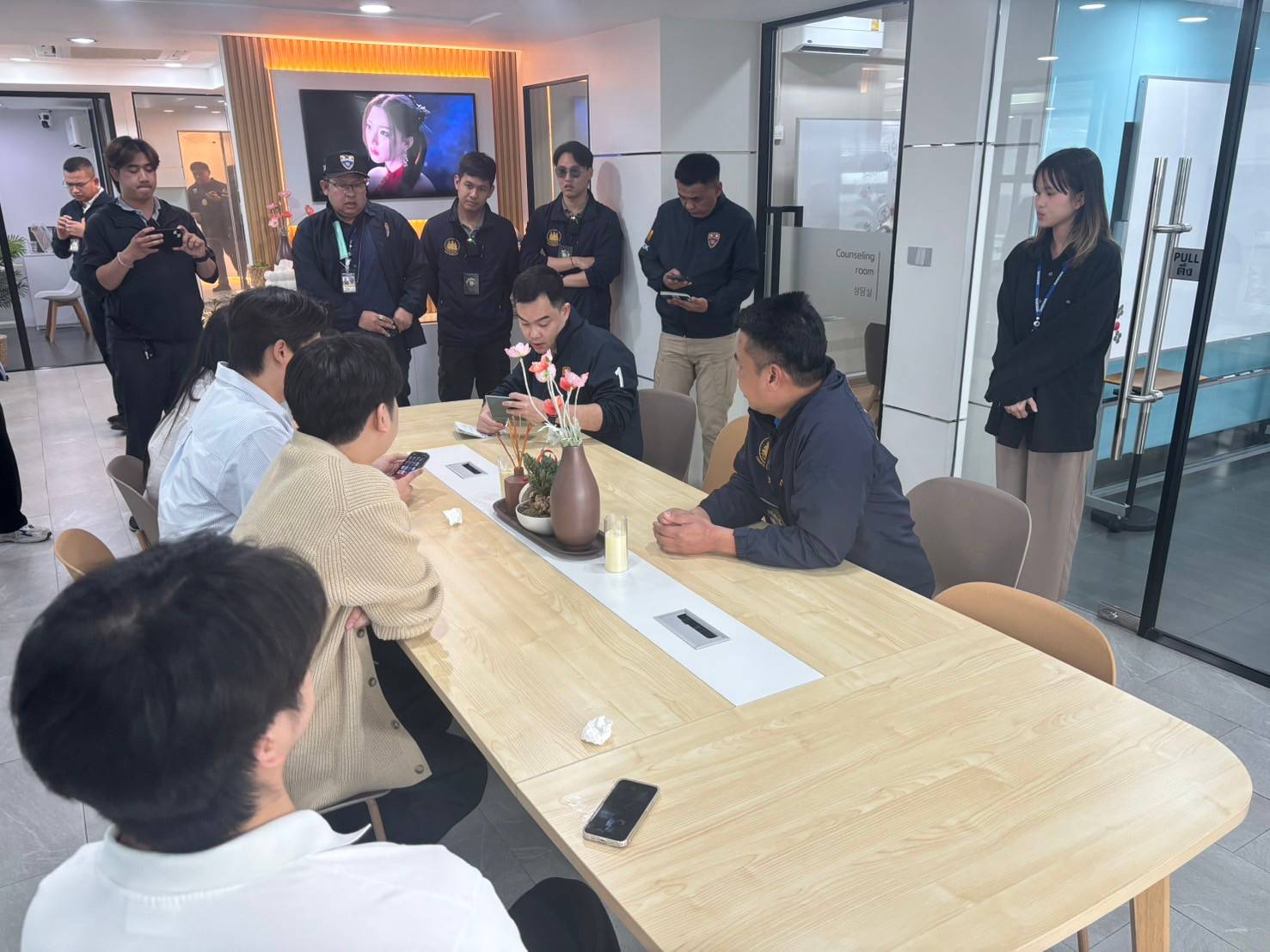 นายสมชาย กล่าวต่อว่า โดยเมื่อวันที่ 6 กุมภาพันธ์ 2568 เจ้าหน้าที่กรมการจัดหางานได้ลงพื้นที่ร่วมกับตำรวจตรวจคนเข้าเมือง และพบว่าโรงเรียนสอนภาษาดังกล่าวมีคนลักษณะคล้ายคนต่างชาติกำลังทำหน้าที่สอนภาษาเกาหลีให้นักเรียนไทยจริง เจ้าหน้าที่จึงได้แสดงบัตรและขอตรวจสอบเอกสารประจำตัว จากการตรวจสอบพบครูเกาหลีกระทำความผิด 8 คน เป็นชาย 6 คน หญิง 2 คน ซึ่งเป็นนักท่องเที่ยวที่ได้รับการผ่อนผันให้เข้ามาในประเทศไทยโดยไม่ต้องขอวีซ่า (FREE VISA) และสามารถอยู่ได้ 90 วัน และบางคนอยู่ในไทยเนื่องจากมีภรรยาเป็นคนไทย โดยทั้งหมดไม่มีใบอนุญาตทำงาน ทำให้มีความผิดข้อหาเป็นคนต่างด้าวทำงานโดยไม่มีใบอนุญาตทำงาน และพบนายจ้างกระทำผิด จำนวน 1 ราย ตาม พรก.การบริหารจัดการการทำงานของคนต่างด้าว พ.ศ. 2560 และที่แก้ไขเพิ่มเติม เจ้าหน้าที่จึงได้แจ้งข้อกล่าวหาและควบคุมตัวส่งพนักงานสอบสวน เพื่อดำเนินคดีตามกฎหมาย