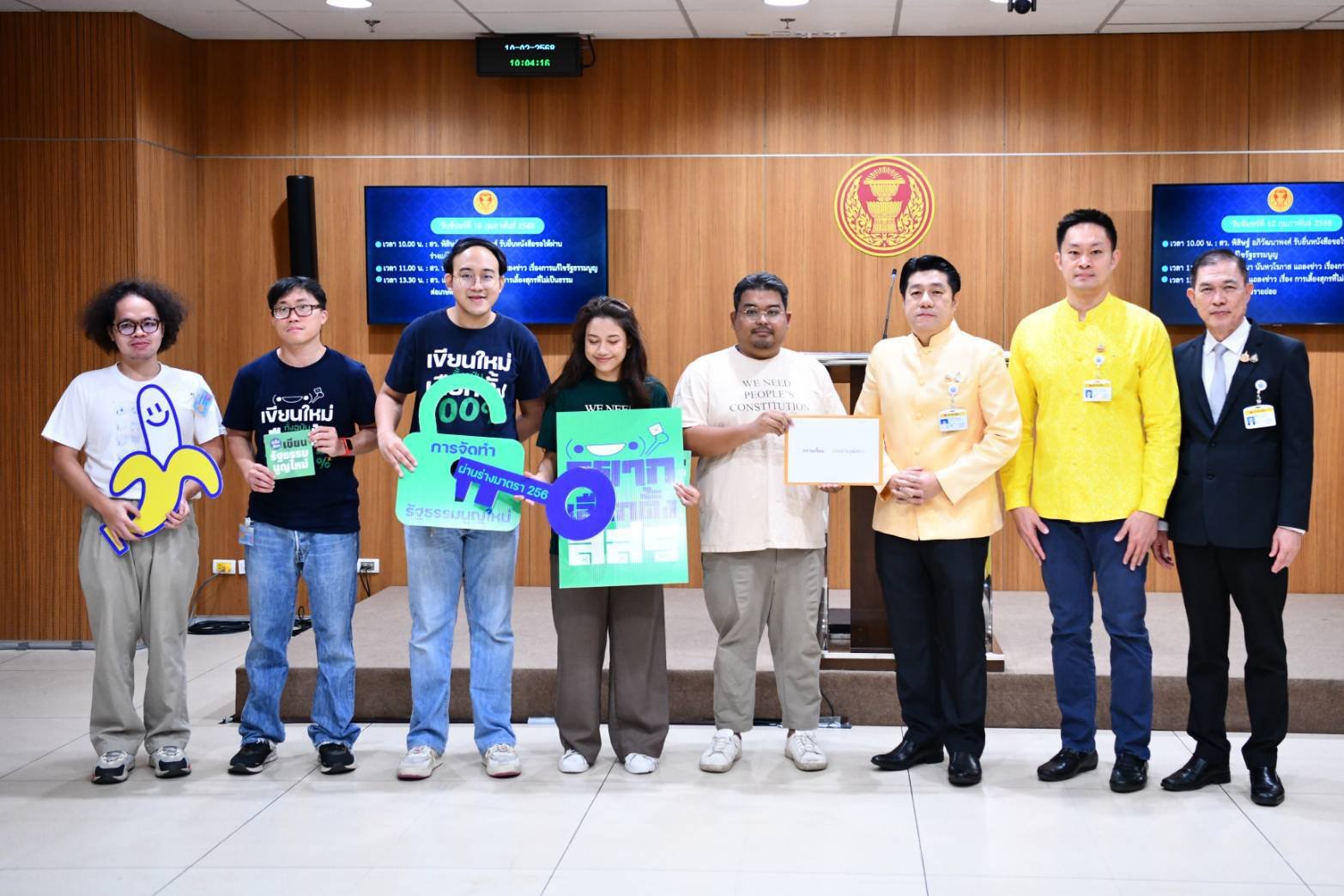 วันที่ 10 ก.พ.ที่ห้องแถลงข่าว ชั้น 1 อาคารรัฐสภา (สส.) สมาชิกวุฒิสภา ประกอบด้วย นายพิสิษฐ์ อภิวัฒนาพงศ์ นายพิชาญ พรศิริประทาน และนายสุทนต์ กล้าการขาย รับหนังสือจากกลุ่มประชาชนร่างรัฐธรรมนูญ นำโดยนายธีรัตน์ พณิชอุดมพัชร์ เพื่อขอเชิญสมาชิกวุฒิสภา (สว.) เข้าร่วมกิจกรรมพบปะประชาชนในวันที่ 13 กุมภาพันธ์ 2568