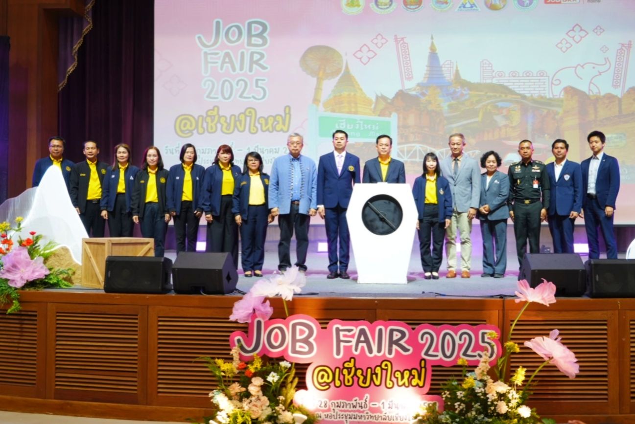 วันที่ 28 ก.พ.นายสมชาย มรกตศรีวรรณ อธิบดีกรมการจัดหางาน (กกจ.) มอบหมายให้นายสิบหมื่นชัย โพธิสินธุ์ รองอธิบดีกรมการจัดหางาน เป็นประธานในพิธีเปิดงาน “JOB FAIR 2025 @เชียงใหม่” โดยมีนางรุ่งรัตน์ มณีโชติ จัดหางานจังหวัดเชียงใหม่ กล่าวรายงาน ผู้บริหารกรมการจัดหางานร่วมเป็นเกียรติ หัวหน้าส่วนราชการสังกัดกระทรวงแรงงานจังหวัดเชียงใหม่ ผู้แทนสถานศึกษา ประธานหอการค้าจังหวัดเชียงใหม่ นักเรียน นักศึกษา สถานประกอบการภาคเอกชน ให้การต้อนรับ ที่หอประชุมมหาวิทยาลัยเชียงใหม่ ต.สุเทพ อ.เมือง จ.เชียงใหม่