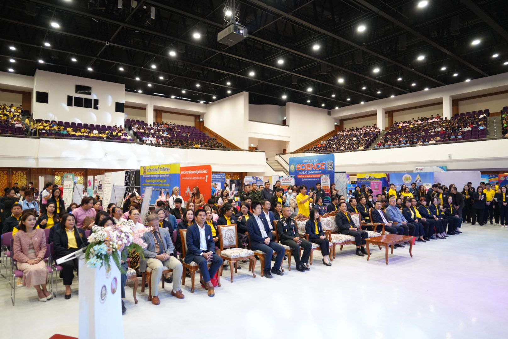 นายสิบหมื่นชัย ฯ กล่าวต่อว่า สำหรับงานฯ วันนี้ ภายในงานมีกิจกรรมที่น่าสนใจจำนวนมาก อาทิ การรับสมัครและสัมภาษณ์งานโดยตรงกับนายจ้าง/สถานประกอบการในจังหวัดเชียงใหม่และจังหวัดใกล้เคียง จำนวน 50 บริษัทชั้นนำ อาทิ บริษัท อรสิริน โฮลดิ้ง จำกัด (มหาชน) บริษัท เซ็นทรัล ฟู้ด โฮลเซลล์ จำกัด บริษัท ดีแคทลอน (ประเทศไทย) จำกัด บริษัท เซ็นทรัล รีเทล คอร์ปอเรชั่น จํากัด (มหาชน) บริษัท เค ซี ซี พี 2011 กรุ๊ป จำกัด มีตำแหน่งงานว่างกว่า 3,000 อัตรา อาทิ supervisor-Sales สถาปนิก ช่างไฟฟ้า ผู้จัดการโครงการ พนักงานต้อนรับส่วนหน้า ฯลฯ การสาธิตอาชีพและฝึกปฏิบัติอาชีพอิสระ อาทิ การทำพวงกุญแจเครื่องหนัง การทำพวงกุญแจตุ๊กตาลายปัก การทำที่รองแก้วจากผักตบชวา การสร้างภาพและคลิปด้วย AI การประดิษฐ์เครื่องประดับจากลูกปัด การประดิษฐ์โคมล้านนา การให้คำปรึกษาด้านการสมัครงานทั้งการทำงานในประเทศและต่างประเทศ จากบริษัทจัดหางาน และองค์กร IM Japan การบรรยายสร้างแรงบันดาลใจโดยผู้ประสบความสำเร็จทางอาชีพ ในหัวข้อ “การเตรียมความพร้อมเข้าสู่ตลาดแรงงาน ในยุคดิจิทัล” นิทรรศการโลกอาชีพและการศึกษาต่อ การเรียนรู้อาชีพเสมือนจริง การทดสอบวัดบุคลิกภาพเพื่อการศึกษาต่อและการเลือกอาชีพ การจัดแสดงและจำหน่ายสินค้าผลิตภัณฑ์ผู้รับงานไปทำที่บ้าน คนพิการ ผู้สูงอายุ ผู้ต้องขัง สินค้า OTOP การจำหน่ายสินค้าธงฟ้าราคาประหยัด และการให้บริการของหน่วยงานในสังกัดกระทรวงแรงงานและส่วนราชการส่วนภูมิภาคจังหวัดเชียงใหม่ รวมทั้งกิจกรรมการแข่งขันตอบปัญหาชิงรางวัล
