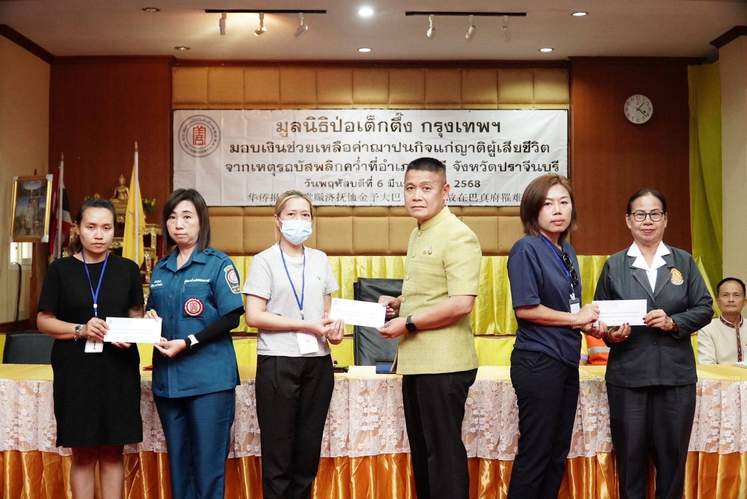 มูลนิธิป่อเต็กตึ๊ง จัดงบประมาณกว่า 5 แสนบาท เดินสายซับน้ำตา มอบเงินเยียวยาให้แก่ครอบครัวผู้สูญเสีย และผู้บาดเจ็บจากเหตุการณ์รถบัสพลิกคว่ำตกข้างทางบริเวณเขาศาลปู่โทน ปราจีนบุรี
