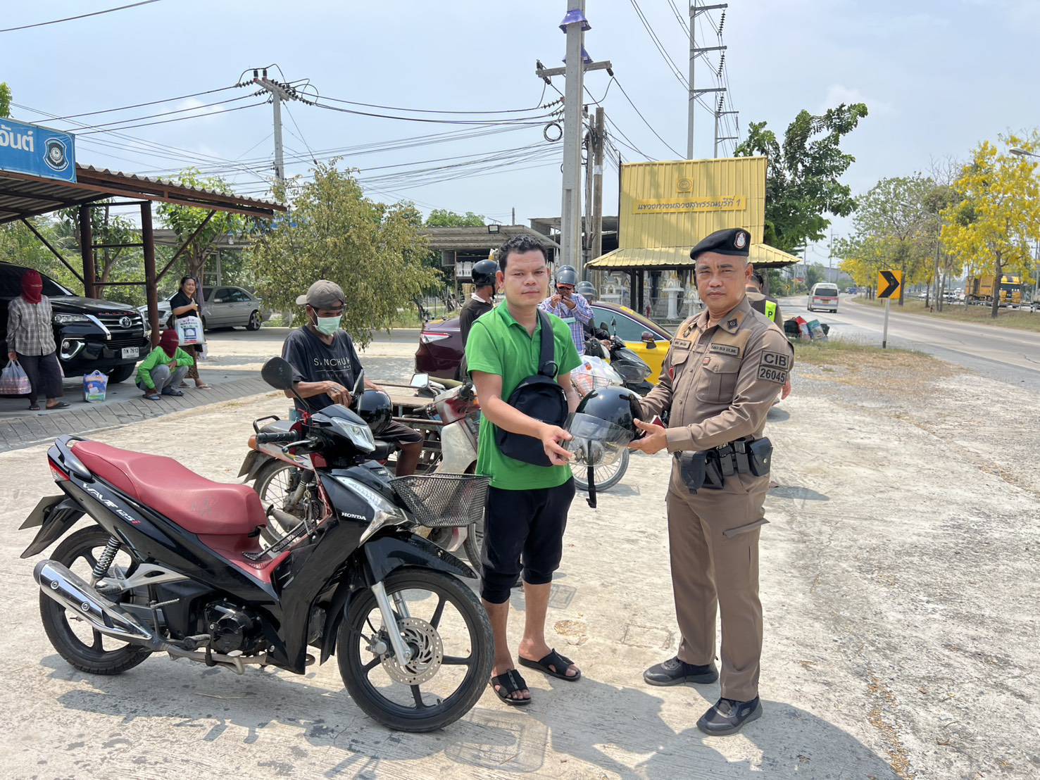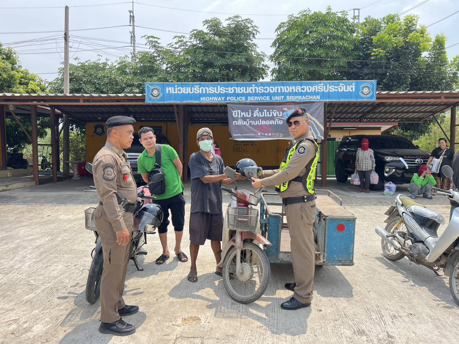 ตำรวจทางหลวงศรีประจันต์ มอบหมวกนิรภัยให้กับผู้ขับขี่รถจักรยานยนต์ในพื้นที่ ตามโครงการจิตอาสารณรงค์ขับขี่ปลอดภัย สวมหมวกนิรภัย ลดอุบัติเหตุช่วงเทศกาลสงกรานต์