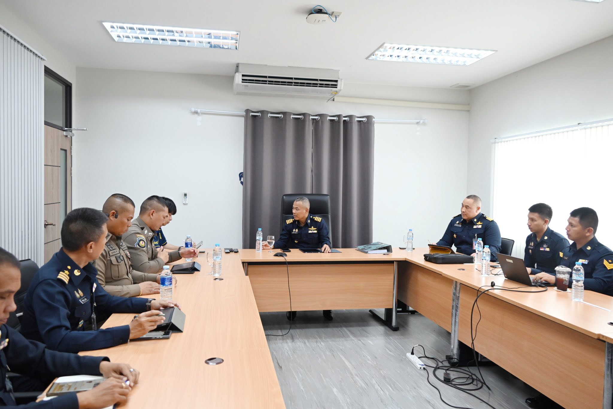 จากนั้น นาวาอากาศเอก ทรงศักดิ์ ธรรมสาร ผู้บังคับการกองบิน 3 พร้อมด้วย เจ้าหน้าที่ตำรวจจากสถานีตำรวจทางหลวง 5 กองกำกับการ 3 กองบังคับการตำรวจทางหลวง กองบัญชาการตำรวจสอบสวนกลาง และแขวงทางหลวงสระแก้ว (วัฒนานคร) ร่วมประชุมหารือเตรียมความพร้อมในการจัดตั้งจุดบริการประชาชนในช่วงเทศกาลสงกรานต์ ประจำปี 2568 โดยมีวัตถุประสงค์เพื่อร่วมมือระหว่างหน่วยงานในการป้องกัน และลดอุบัติเหตุทางถนน โดยการประยุกต์ใช้อากาศยานไร้คนขับขนาดเล็กในการบริหารจัดการการจราจรเพื่ออำนวยความสะดวก และสร้างความปลอดภัยให้กับพี่น้องประชาชนที่เดินทางกลับภูมิลำเนาในช่วงเทศกาลสงกรานต์ให้สามารถเดินทางได้อย่างสะดวก ปลอดภัยตลอดเส้นทาง.