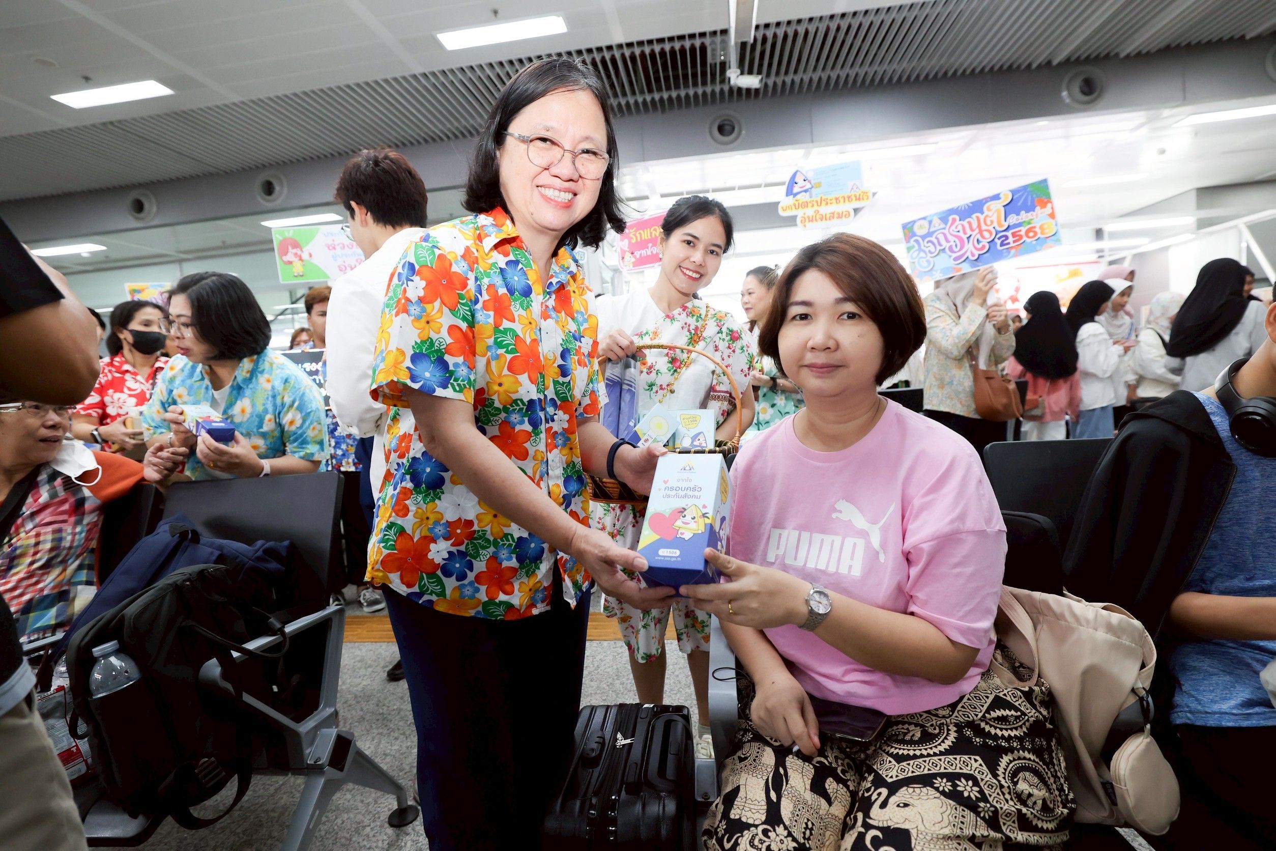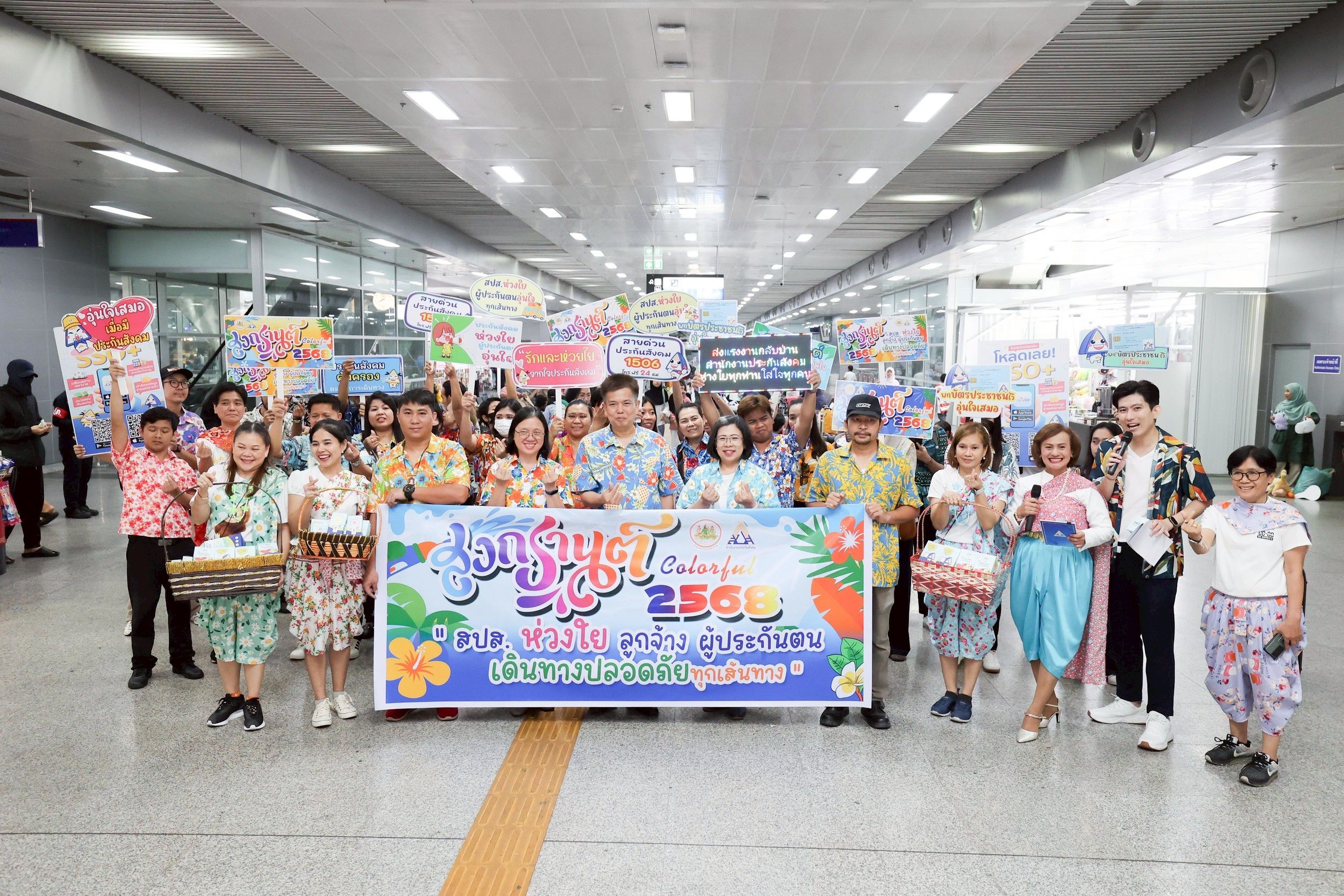 นางมารศรี ใจรังษี เลขาธิการสำนักงานประกันสังคม กล่าวว่า ในช่วงเทศกาลสงกรานต์ปี 2568 ถือเป็นช่วงวันหยุดยาวติดต่อกันหลายวัน คาดว่าจะมีพี่น้องลูกจ้าง ผู้ประกันตนเดินทางกลับภูมิลำเนาจำนวนมาก สำนักงานประกันสังคมจึงได้จัดกิจกรรมส่งผู้ประกันตนกลับบ้านช่วงเทศกาลสงกรานต์ ณ สถานีขนส่งผู้โดยสารกรุงเทพ (จตุจักร) และสถานีกลางกรุงเทพอภิวัฒน์ขึ้น โดยในวันนี้ทางสำนักงานประกันสังคม ได้เตรียมกิจกรรมให้ความรู้เกี่ยวกับสิทธิประโยชน์ในกรณีต่าง ๆ โดยเฉพาะในกรณีเจ็บป่วยฉุกเฉิน หรือหากเกิดอุบัติเหตุ แนะนำให้พกบัตรประจำตัวประชาชนติดตัว เพราะผู้ประกันตนสามารถเข้ารับการรักษาในโรงพยาบาลที่อยู่ใกล้ที่สุดได้ทันที ตามสิทธิ UCEP (Universal Coverage for Emergency Patients) ที่ช่วยให้ผู้ป่วยฉุกเฉินวิกฤตสามารถเข้ารับการรักษาในโรงพยาบาลทุกแห่งที่อยู่ใกล้ที่สุดโดยไม่เสียค่าใช้จ่าย จนพ้นระยะวิกฤต หรือแพทย์ประเมินแล้วว่าสามารถเคลื่อนย้ายได้อย่างปลอดภัย แต่ไม่เกิน 72 ชั่วโมง