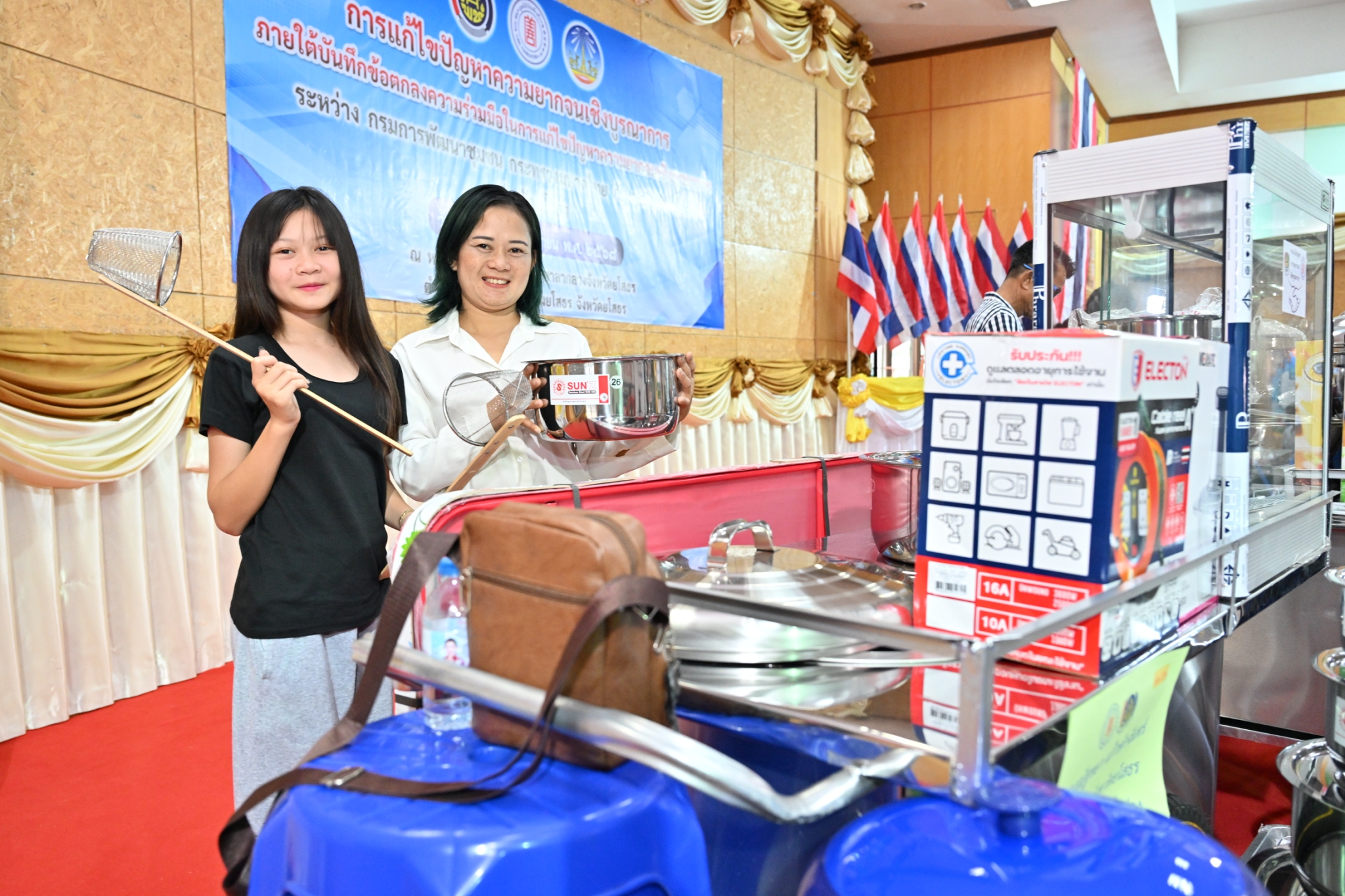 โครงการแก้ไขปัญหาความยากจนเชิงบูรณาการ มูลนิธิป่อเต็กตึ๊ง ได้สนับสนุนอุปกรณ์ประกอบอาชีพ ช่วยเหลือครัวเรือนยากจน ตามบันทึกข้อตกลงความร่วมมือแก้ไขปัญหาความยากจน ระหว่างกรมการพัฒนาชุมชนและมูลนิธิป่อเต็กตึ๊ง ซึ่งมูลนิธิฯ ได้จัดงบประมาณดำเนินการเพื่อจัดหาวัสดุอุปกรณ์การประกอบอาชีพมอบให้แก่ครัวเรือนยากจน ให้สามารถประกอบอาชีพเลี้ยงตนเองและครอบครัว โดยในกลุ่มเป้าหมายแรกดำเนินการในพื้นที่ภาคกลาง 17 จังหวัด รวม 98 ครัวเรือน ต่อมา ได้ดำเนินการในพื้นที่จังหวัดทางภาคเหนือ 17 จังหวัด รวม 230 ครัวเรือน ซึ่งได้ดำเนินการเป็นที่เรียบร้อยแล้ว และในขณะได้พิจารณาพื้นที่ภาคตะวันออกเฉียงเหนือ รวม 20 จังหวัด ประกอบด้วย จังหวัดบุรีรัมย์ สุรินทร์ กาฬสินธุ์ ชัยภูมิ นครราชสีมา อุดรธานี มุกดาหาร หนองบัวลำภู บึงกาฬ ยโสธร ศรีสะเกษ มหาสารคาม ขอนแก่น อุบลราชธานี ร้อยเอ็ด อำนาจเจริญ สกลนคร เลย หนองคาย และ นครพนม