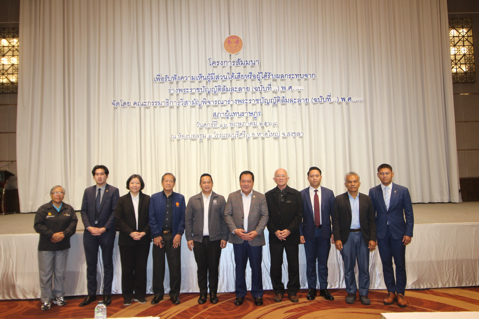 เมื่อวันที่ 16 พ.ค. ที่โรงแรมบุรีศรีภู อ.หาดใหญ่ จ.สงขลา พ.ต.อ.ทวี สอดส่อง รมว.ยุติธรรม เป็นประธานพิธีเปิดโครงการสัมมนาเพื่อรับฟังความคิดเห็นผู้มีส่วนได้เสียหรือผู้ได้รับ ผลกระทบจากร่างพระราชบัญญัติล้มละลาย (ฉบับที่ ..) พ.ศ. .... จัดโดย คณะกรรมาธิการ(กมธ.)วิสามัญพิจารณาร่างพระราชบัญญัติล้มละลาย (ฉบับที่ ..) พ.ศ. .... สภาผู้แทนราษฎร โดยมีผู้แทนหน่วยงานต่าง ๆ ทั้งภาคธุรกิจ ภาควิชาการ สื่อมวลชน และผู้ที่สนใจเข้าร่วมประชุมเป็นจำนวนมาก