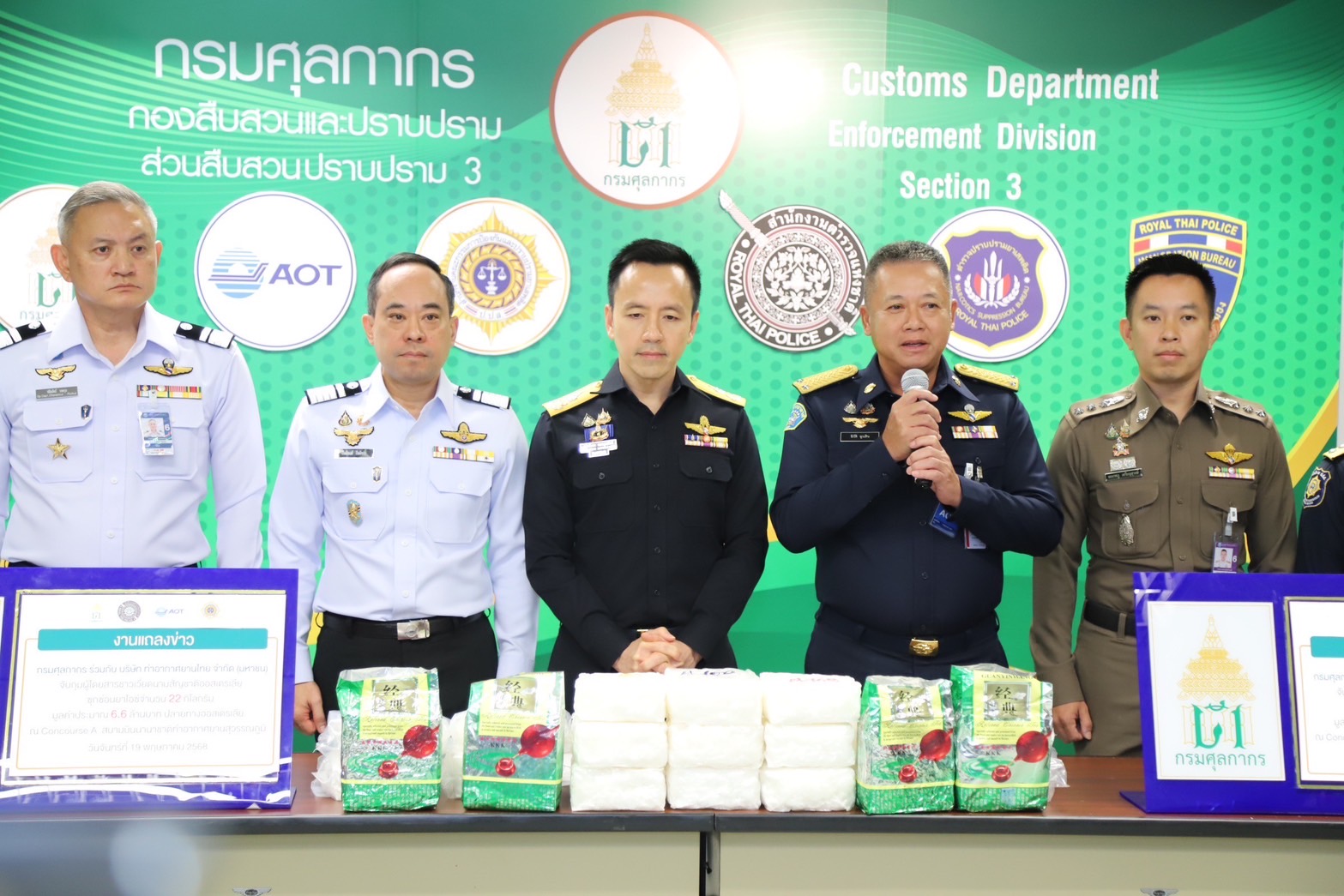 ท่าอากาศยานสุวรรณภูมิร่วมกับศูนย์ปฏิบัติการเฉพาะกิจป้องกันและปราบปรามยาเสพติดในพื้นที่ท่าอากาศยาน และคลังสินค้า กรมศุลกากร และหน่วยงานที่เกี่ยวข้อง แถลงผลการปฏิบัติการร่วมกันในการจับกุมผู้โดยสารสัญชาติออสเตรเลีย พยายามส่งออกเมทแอมเฟตามีน (ไอซ์) มูลค่ากว่า 6.6 ล้านบาท