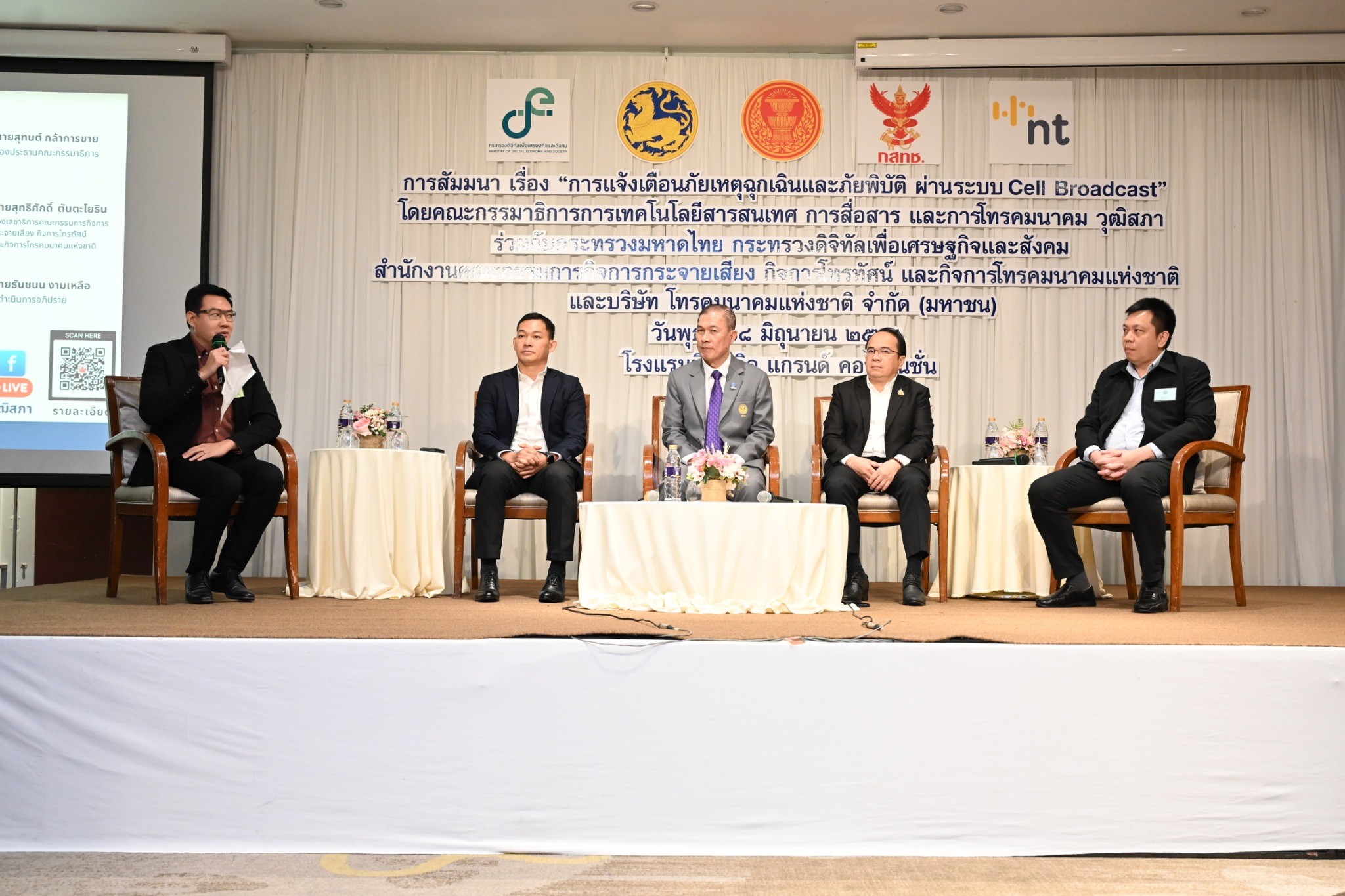 เมื่อวันที่ 18 มิ.ย. ที่ห้องแมจิก 3 ชั้น 2 โรงแรมมิราเคิล แกรนด์ คอนเวนชั่น เขตหลักสี่ กรุงเทพมหานคร คณะกรรมาธิการ (กมธ.) การเทคโนโลยีสารสนเทศ การสื่อสาร และการโทรคมนาคม (ICT) วุฒิสภา ร่วมกับกระทรวงดิจิทัลเพื่อเศรษฐกิจและสังคม กระทรวงมหาดไทย สำนักงานคณะกรรมการกิจการกระจายเสียง กิจการโทรทัศน์ และกิจการโทรคมนาคมแห่งชาติ และบริษัท โทรคมนาคมแห่งชาติ จำกัด (มหาชน) ได้จัดสัมมนา เรื่อง “การแจ้งเตือนภัยเหตุฉุกเฉินและภัยพิบัติ ผ่านระบบ Cell Broadcast”