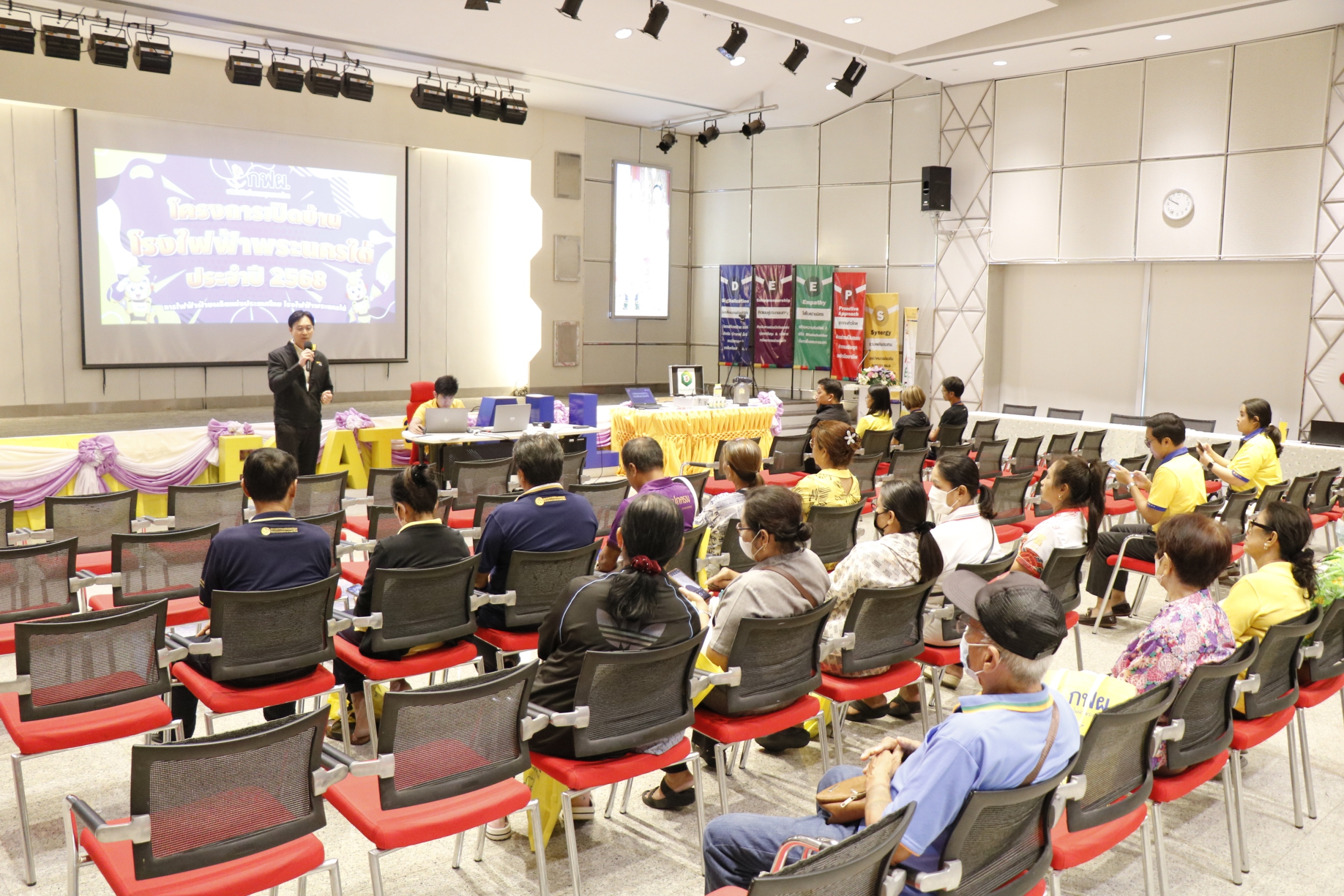 ภายในกิจกรรมมีการบรรยายให้ความรู้ด้านกระบวนการผลิตไฟฟ้าของโรงไฟฟ้าพระนครใต้ และชี้แจงข้อมูลด้านความก้าวหน้าของโครงการโรงไฟฟ้าพลังความร้อนร่วมพระนครใต้ ชุดที่ 5-7 ที่จะดำเนินการในอนาคต โดยได้รับเกียรติจาก นางสาวภิญญา อินนุกูล หัวหน้าแผนกสร้างสัมพันธ์ชุมชนพื้นที่โรงไฟฟ้าพลังความร้อน (หสชร-พ.) และนายพชร พิชยานนท์ วิศวกรระดับ 7 กองการผลิตโรงไฟฟ้าพลังความร้อนร่วมทดแทน บรรยายให้ความรู้