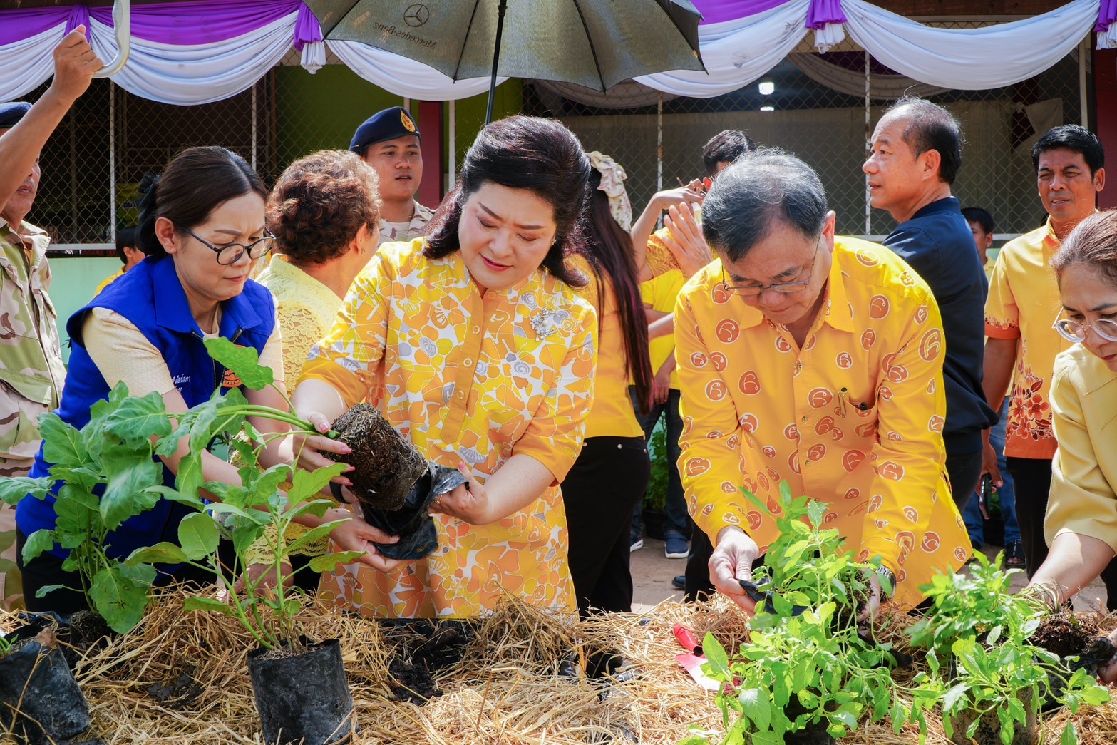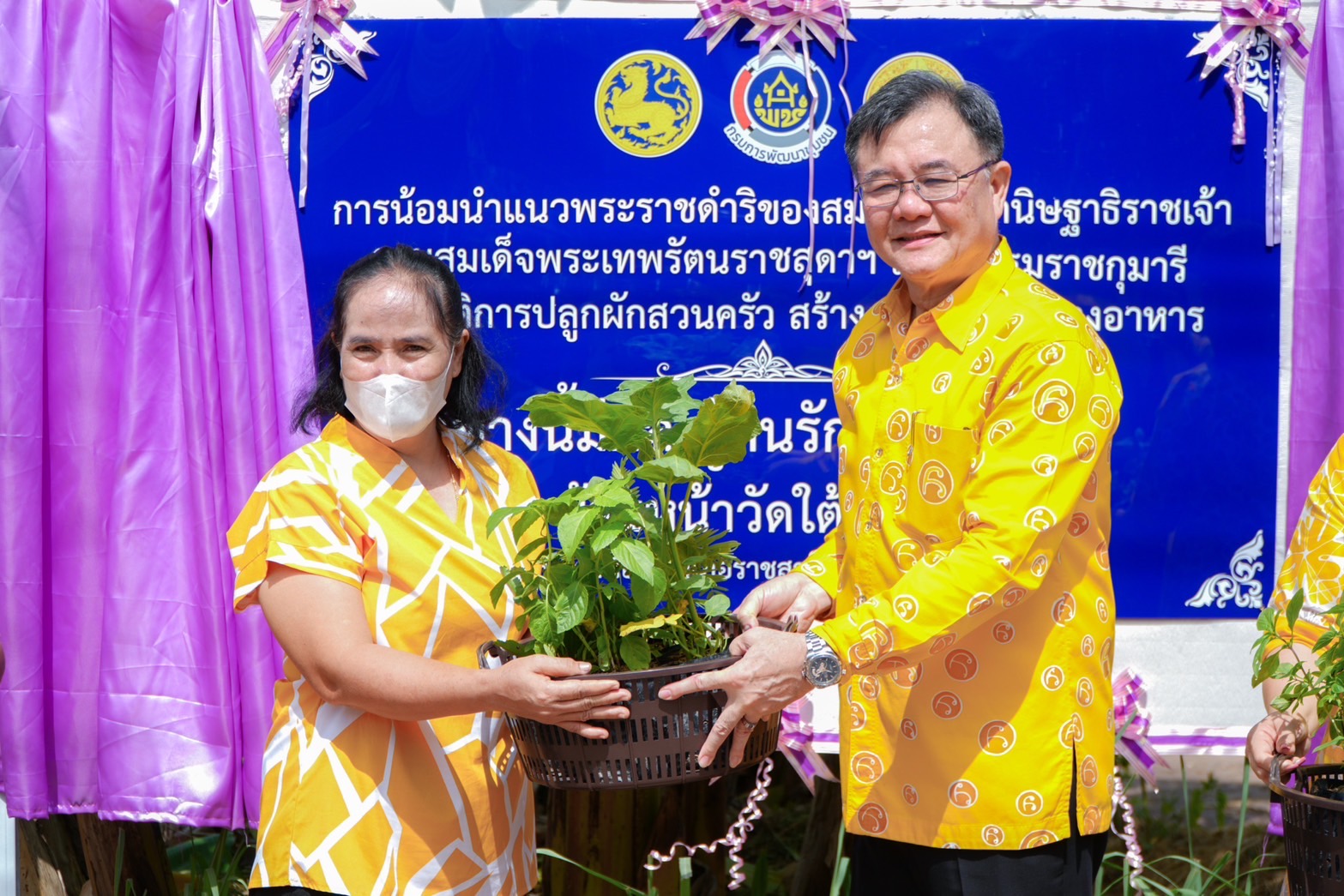 สำหรับกิจกรรมที่จัดขึ้นเพื่อขยายผลการน้อมนำแนวพระราชดำริสู่ปฏิบัติการปลูกผักสวนครัว ให้เกิดผลเป็นรูปธรรมในระดับชุมชน ต่อยอดสู่การสร้าง หมู่บ้านต้นแบบด้านความมั่นคงทางอาหาร โดยมีเป้าหมายสำคัญคือ สร้างแหล่งอาหารปลอดภัย ลดรายจ่าย เพิ่มรายได้ และยกระดับคุณภาพชีวิตประชาชนอย่างยั่งยืน กลุ่มเป้าหมายประกอบด้วย ผู้นำชุมชน กลุ่มองค์กร และครัวเรือนผู้นำต้นแบบ จำนวน 10 ครัวเรือน พร้อมด้วยหน่วยงานภาคีเครือข่ายที่เกี่ยวข้องอีก 70 คน กิจกรรมประกอบด้วย พิธีเปิดป้าย “ทางนี้มีผล ผู้คนรักกัน ปันสุข” กิจกรรมปลูกต้นไม้ ปลูกผักสวนครัว แจกจ่ายต้นกล้าและเมล็ดพันธุ์ผัก โดยโครงการ“ทางนี้มีผล ผู้คนรักกัน”ไม่เพียงช่วยสร้างความมั่นคงทางอาหารเท่านั้น แต่ยังส่งเสริมความสัมพันธ์อันดีในชุมชน เกิดการแบ่งปัน สร้างพื้นที่แห่งความสุขอย่างแท้จริง ภายใต้หลักปรัชญาของเศรษฐกิจพอเพียง ที่จะนำไปสู่ความมั่นคง มั่งคั่ง และยั่งยืน.