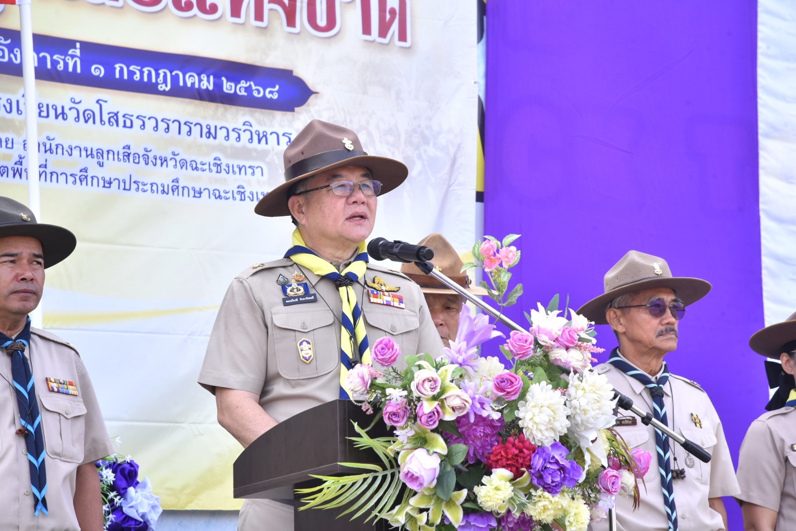วันนี้ 1 ก.ค.ที่โรงเรียนวัดโสธรวรารามวรวิหาร อ.เมือง จ.ฉะเชิงเทรา สำนักงานลูกเสือจังหวัดฉะเชิงเทรา จัดพิธีสวนสนามและทบทวนคำปฏิญาณ เนื่องในวันสถาปนาลูกเสือแห่งชาติ (National Scout Day) ประจำปี 2568 โดยมีนายขจรเกียรติ รักพานิชมณี ผู้ว่าราชการจังหวัดฉะเชิงเทรา เป็นประธานในพิธี พร้อมด้วยผู้อำนวยการโรงเรียนวัดโสธรวรารามวรวิหาร ผู้บังคับบัญชาลูกเสือ และกองลูกเสือ – เนตรนารี จากสถานศึกษาในจังหวัด เข้าร่วมพิธีอย่างพร้อมเพรียง โดยพิธีเริ่มต้นด้วยการเชิญธงลูกเสือจังหวัดเข้าสู่บริเวณพิธี จากนั้นผู้บังคับบัญชาลูกเสืออาวุโสนำลูกเสือกล่าวคำปฏิญาณตน และร่วมกันเข้าสู่พิธีสวนสนามอย่างเป็นระเบียบเรียบร้อย แสดงถึงความภาคภูมิใจ และความมุ่งมั่นของเหล่าลูกเสือและเนตรนารีในจังหวัดฉะเชิงเทรา
