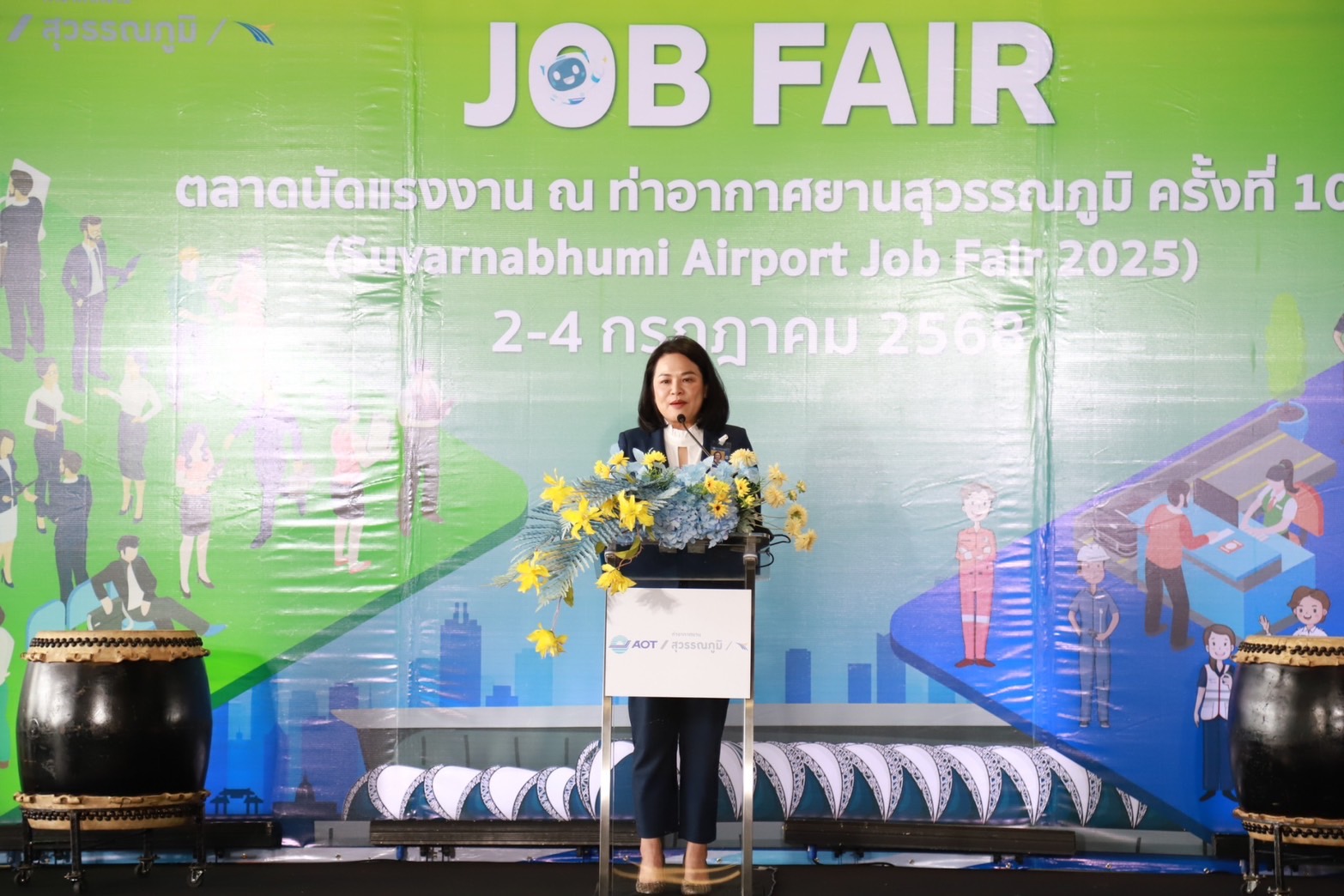 วันที่ 2 ก.ค.นางกรรณิการ์ เปรมประเสริฐ รองผู้อำนวยการท่าอากาศยานสุวรรณภูมิ (สายปฏิบัติการ 2) บริษัท ท่าอากาศยานไทย จำกัด (มหาชน) (AOT) เป็นประธานในพิธีเปิดโครงการตลาดนัดแรงงาน ที่ท่าอากาศยานสุวรรณภูมิ (ทสภ.) ครั้งที่ 10 ประจำปี 2568 หรือ Suvarnabhumi Airport Job Fair 2025 ณ ศูนย์การขนส่งสาธารณะ ทสภ. โดยมีผู้บริหาร ทสภ. ผู้แทนจัดหางานจังหวัดสมุทรปราการ และผู้แทนจากบริษัทผู้ประกอบการเข้าร่วมในพิธีฯ
