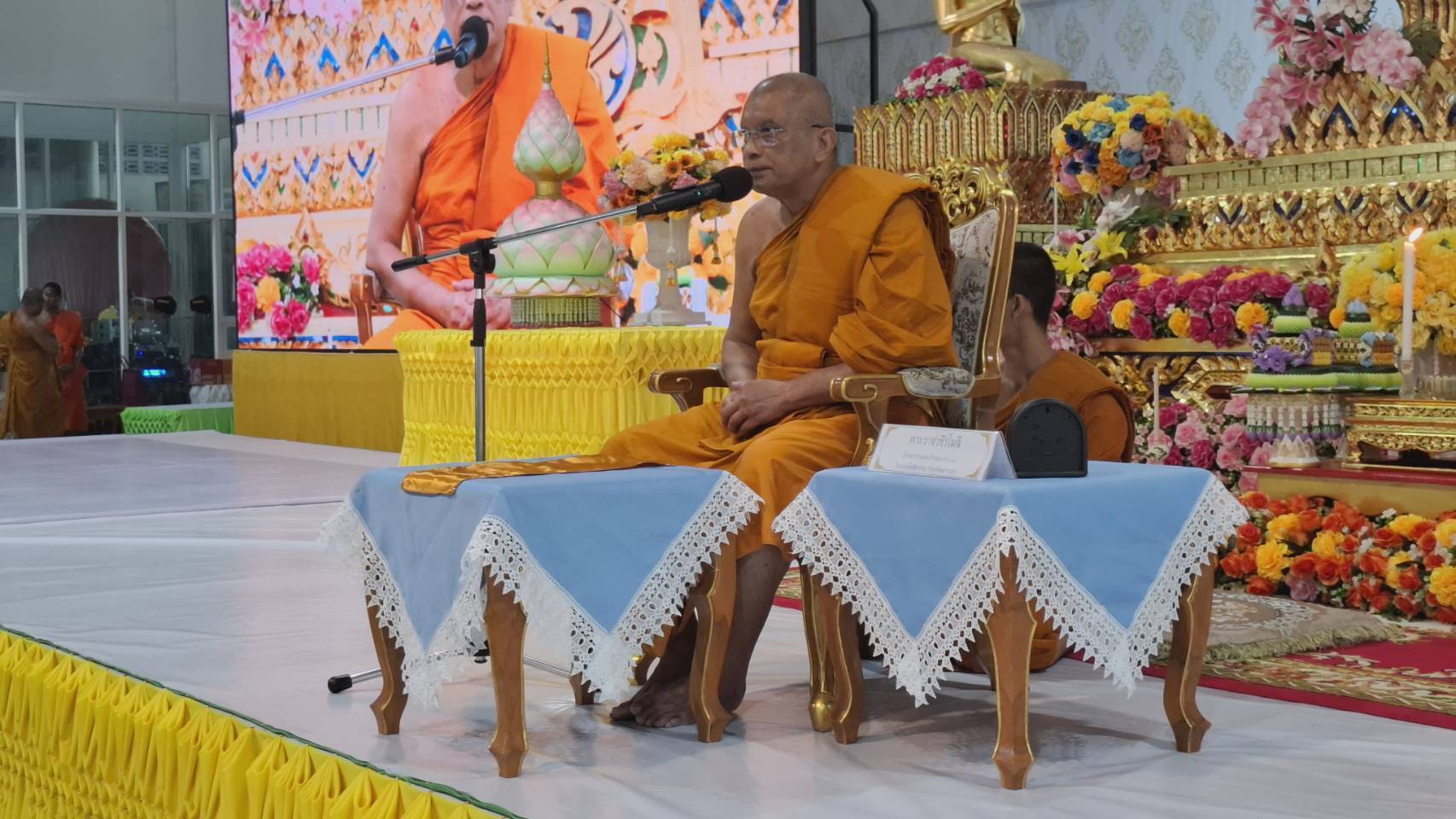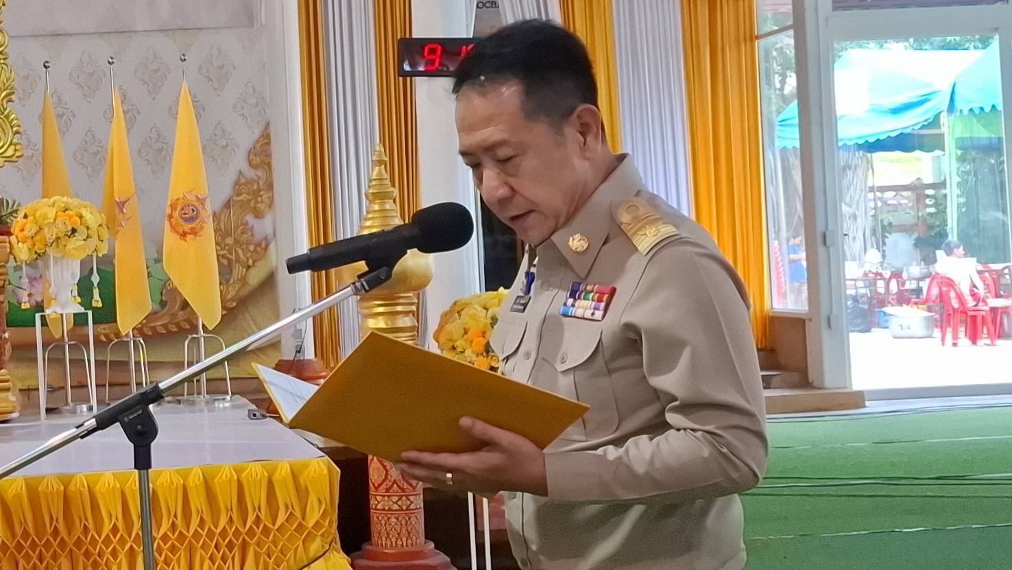 ขณะที่นายนริศ นิรามัยวงศ์ ผู้ว่าราชการจังหวัดสมุทรสาคร ก็ได้กล่าวถวายความรู้และมอบนโยบายให้กับข้าราชการ โดยเรื่องสำคัญคือการเชิญชวนหน่วยงานภาครัฐ ภาคเอกชน และประชาชน จัดตั้งโต๊ะหมู่ประดิษฐานพระบรมฉายาลักษณ์พระบาทสมเด็จพระเจ้าอยู่หัว พร้อมเครื่องราชสักการะ ประดับธงชาติไทยคู่กับธงพระนามาภิไธย ว.ป.ร. และประดับผ้าระบายสีเหลืองร่วมกับผ้าระบายสีขาวตามหน่วยงาน อาคาร บ้านเรือน ตลอดเดือนกรกฎาคม 2568 อีกทั้งยังเน้นยำเรื่องการป้องกันแก้ไขปัญหายาเสพติดที่เป็นวาระเร่งด่วนของรัฐบาล ท้องถิ่น สถานศึกษา ภาคศาสนา ต้องช่วยกันสอดส่องดูแล หากพบผู้เสพ ผู้ขาย ต้องดำเนินการเข้าระบบ และต้องแก้ปัญหาให้เห็นผลภายใน 3 เดือนนี้ นอกจากนั้น คือเรื่อง ที่กระทรวงมหาดไทยมีโครงการที่ได้ทำบันทึกข้อตกลงคณะสงฆ์ 3 โครงการ คือ 1.โครงการเกื้อหนุนระหว่างวัดและชุมชนด้านสาธารณสงเคราะห์ 2. โครงการวัด ประชารัฐ สร้างสุข และ 3.โครงการหมู่บ้านรักษาศีล 5