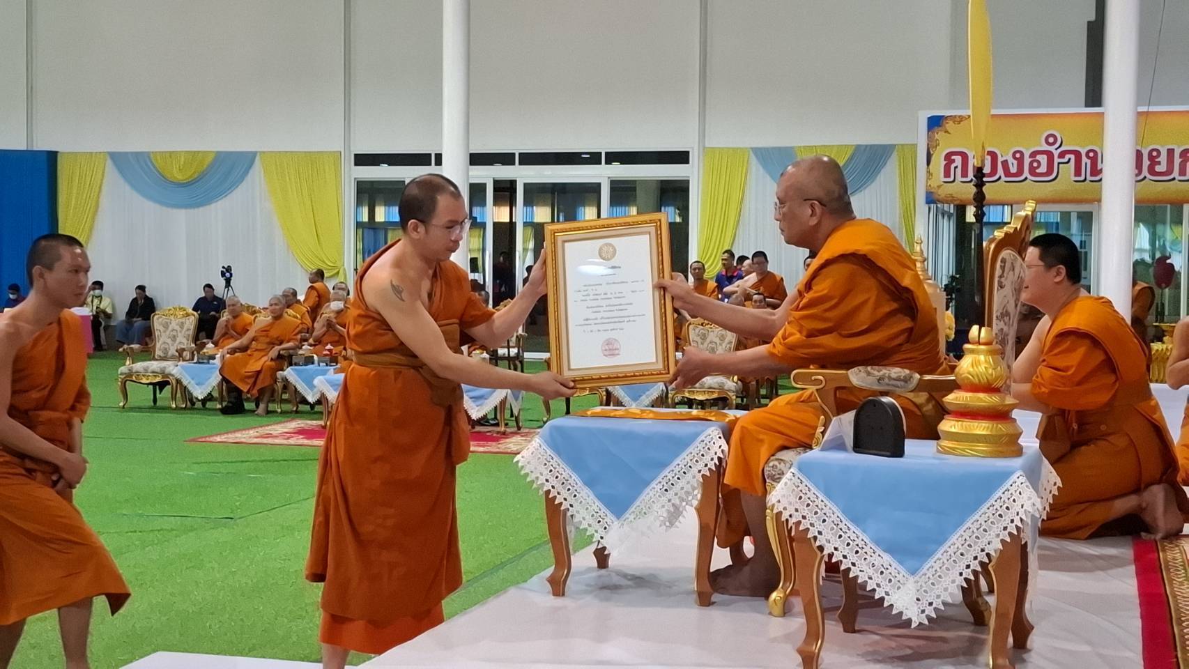 ในโอกาสนี้ พระราชวชิรโมลี ผู้รักษาการแทนเจ้าคณะภาค 14 ได้มอบตราตั้งฐานานุกรมแก่พระสงฆ์วัดโรงเข้ 1 รูป ,ตราตั้งผู้ช่วยเจ้าอาวาส 4 รูป ตราตั้งพระกรรมวาจาจารย์ 1 รูป และ ตราตั้งครูสอนพระปริยัติธรรม 24 รูป จากนั้นจึงกล่าวให้โอวาท โดยเน้นเรื่องหน้าที่ของภิกษุสงฆ์ 6 ด้าน ตามพระราชบัญญัติคณะสงฆ์ พ.ศ. 2505 และที่แก้ไขเพิ่มเติม คือ 1.ด้านการปกครอง:การบริหารจัดการกิจการคณะสงฆ์,การควบคุมดูแลพระภิกษุสามเณร,การระงับอธิกรณ์ (ข้อขัดแย้ง), และการวินิจฉัยข้ออุทธรณ์,2. ด้านการศาสนศึกษา:การจัดการศึกษาพระปริยัติธรรมสำหรับพระภิกษุสามเณร,การส่งเสริมการเรียนรู้ธรรมะสำหรับประชาชน,การจัดการเรียนการสอนทั้งพระ และคฤหัสถ์ 3.ด้านการศึกษาสงเคราะห์:การให้ทุนการศึกษา,การสนับสนุนการศึกษาเพื่อพัฒนาบุคลากรทางศาสนาและชุมชน,การส่งเสริมการเรียนรู้ตลอดชีวิต,4.ด้านการเผยแผ่พระพุทธศาสนา: การเผยแผ่หลักธรรมคำสอน,การจัดกิจกรรมทางศาสนา,การส่งเสริมการปฏิบัติธรรม,การใช้สื่อต่างๆ เผยแพร่พระพุทธศาสนา,5. ด้านการสาธารณูปการ:การก่อสร้างและบูรณปฏิสังขรณ์ศาสนสถาน,การบำรุงรักษาศาสนวัตถุ,การบริหารจัดการทรัพย์สินของวัด,การดูแลศาสนสมบัติ,6. ด้านการสาธารณสงเคราะห์: การช่วยเหลือประชาชนในชุมชน,การจัดกิจกรรมสงเคราะห์,การให้ความช่วยเหลือผู้ที่ต้องการความช่วยเหลือ