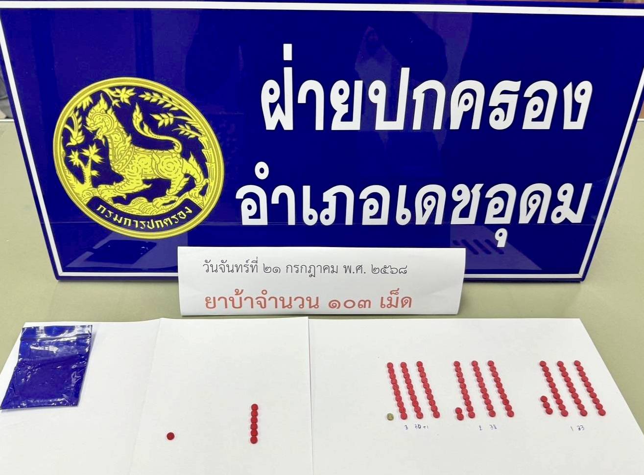 ฝ่ายปกครองอำเภอเดชอุดม เปิดปฏิบัติการกวาดล้างยาเสพติด "No Drugs No Dealers ผนึกกำลัง ชุมชนปลอดยาเสพติด” รวบเครือข่าย สาวสองยกแก๊ง สมุนอีก 5 คน ยาบ้า 103 เม็ด