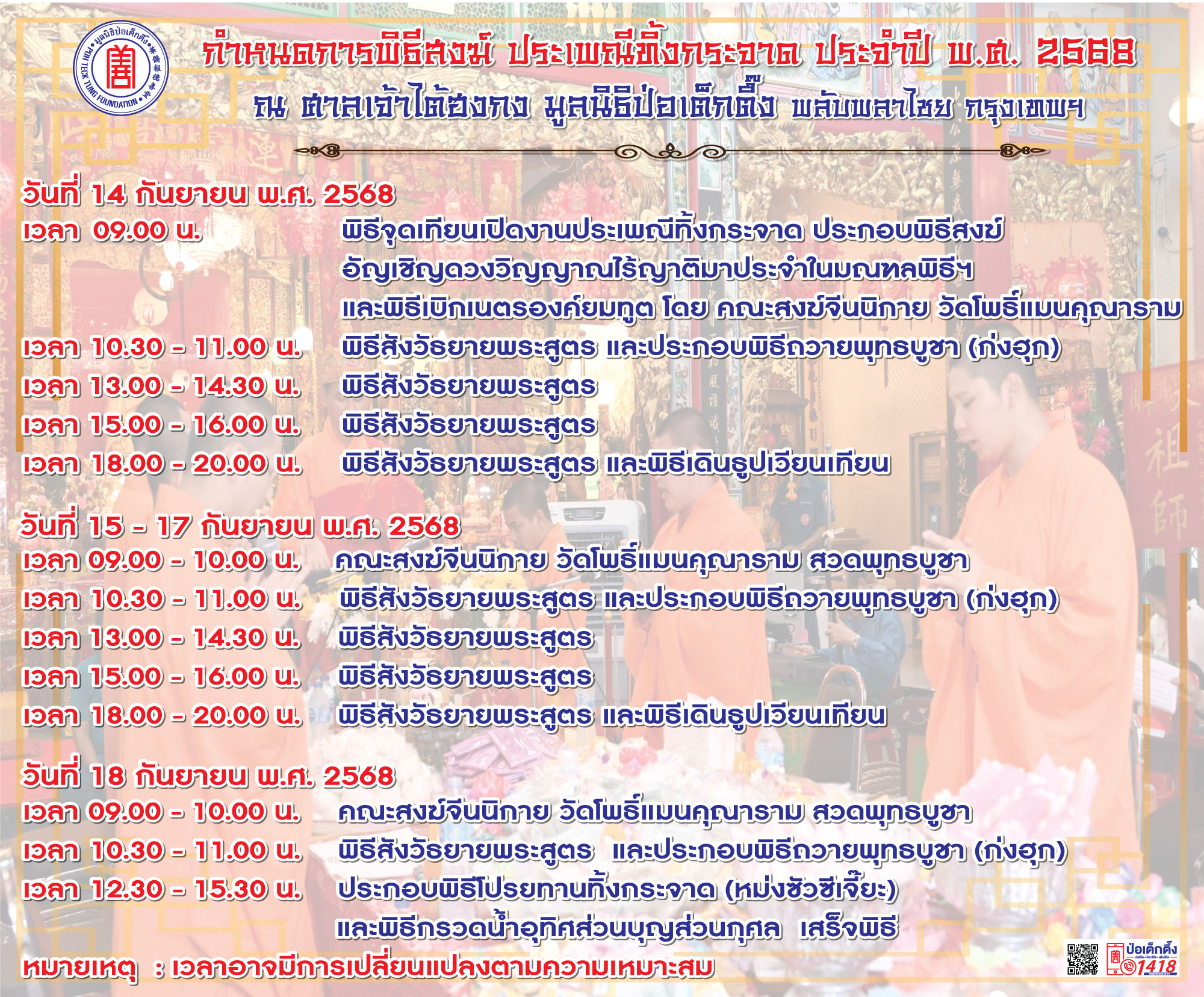 "มูลนิธิป่อเต็กตึ๊ง"ขอเชิญชวนผู้มีจิตศรัทธาร่วมงานมหาบุญ มหากุศลครั้งยิ่งใหญ่ ในประเพณีทิ้งกระจาด ประจำปี 2568 ทำบุญอุทิศส่วนกุศลให้ผู้ล่วงลับ พร้อมทำทานให้ผู้ยากไร้ ที่มูลนิธิป่อเต็กตึ๊ง พลับพลาไชย กรุงเทพฯ